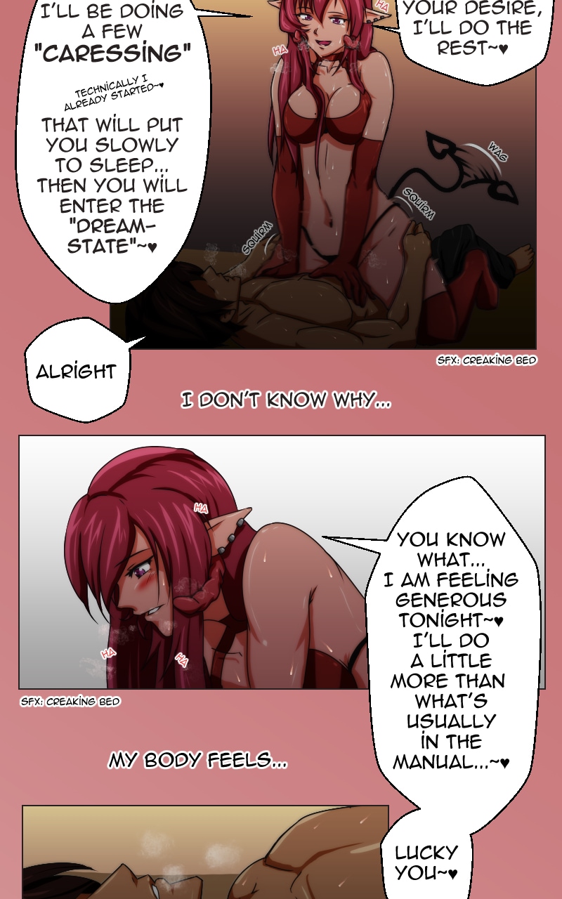 Meet Ortlinde, a succubus. Her job is to gather vitality from men via controlling an individual’s Libido levels through dreams. In return, she grants them the opportunity to experience their desires within those dreams. One night, She notices a man coming back home from work exhausted. Ortlinde approached him, offering him a way to relieve himself free of stress. She did not expect the response he gave her.