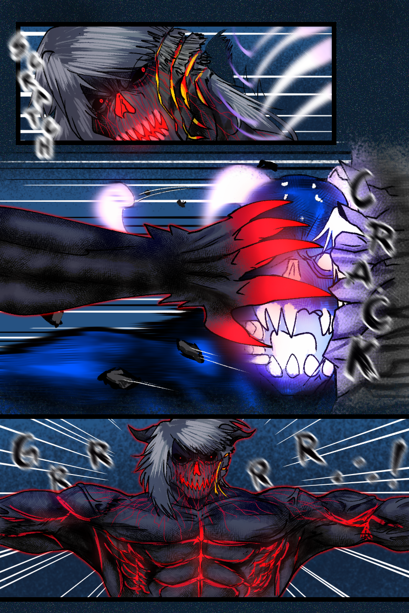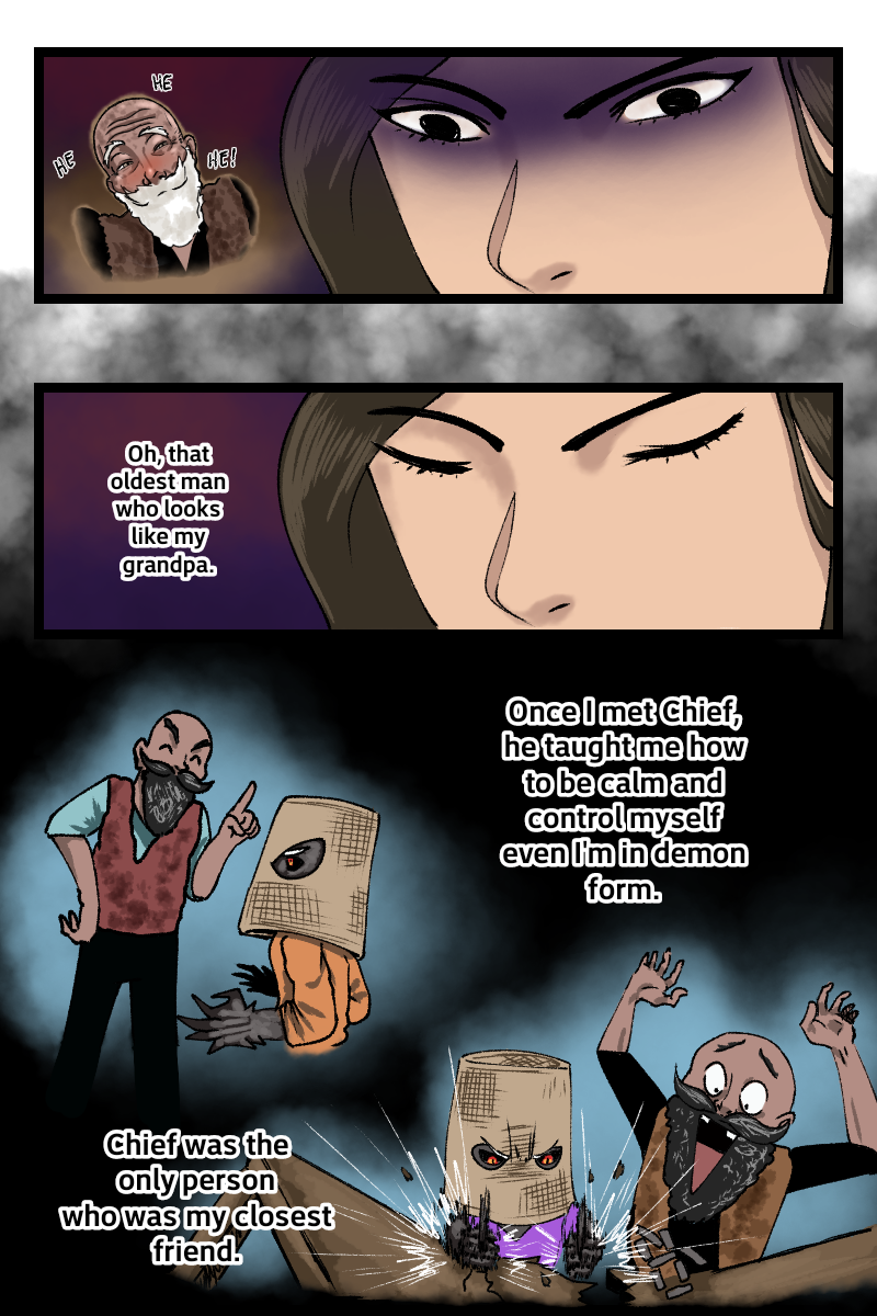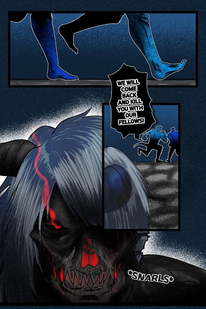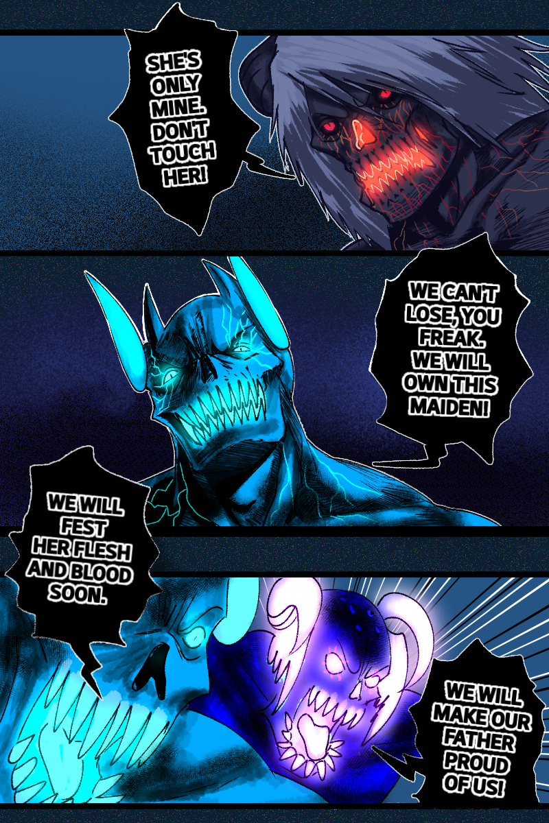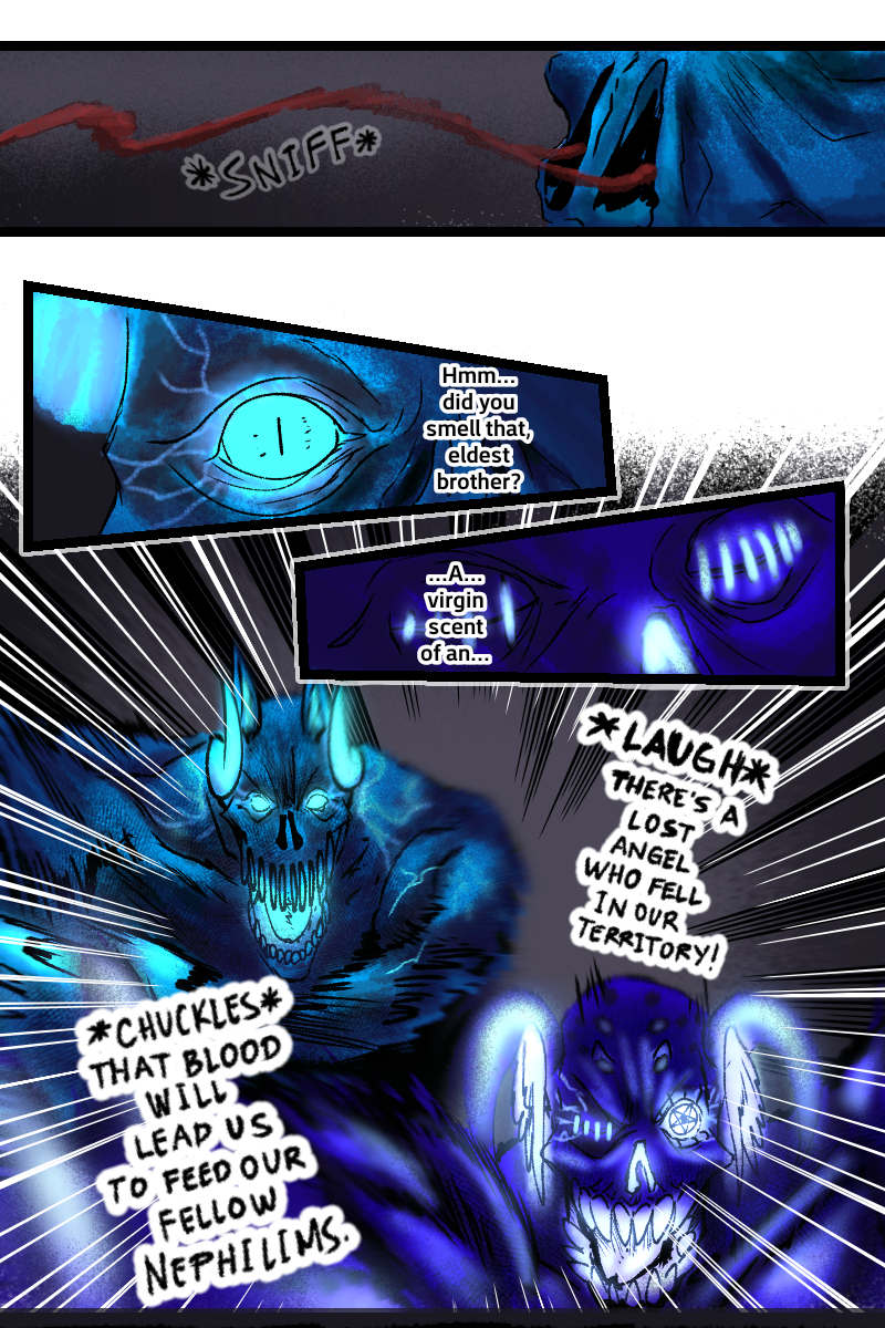 Meanwhile somewhere at the dark side of the residence, Kaye got lost and attacked by Nephilim brothers. Even so, a mysterious black demon with crimson nerves fight with them. Who is he?