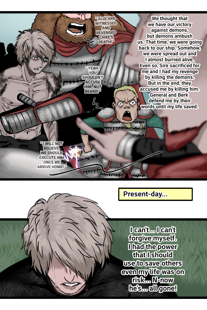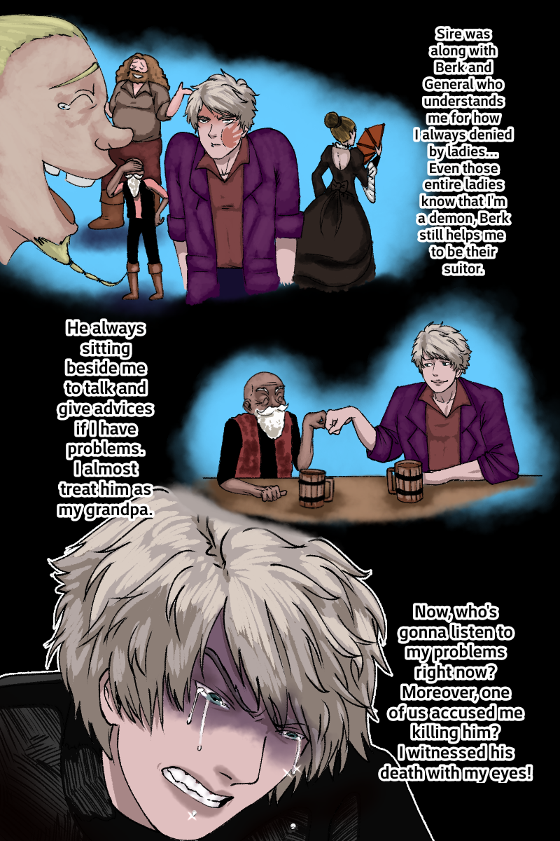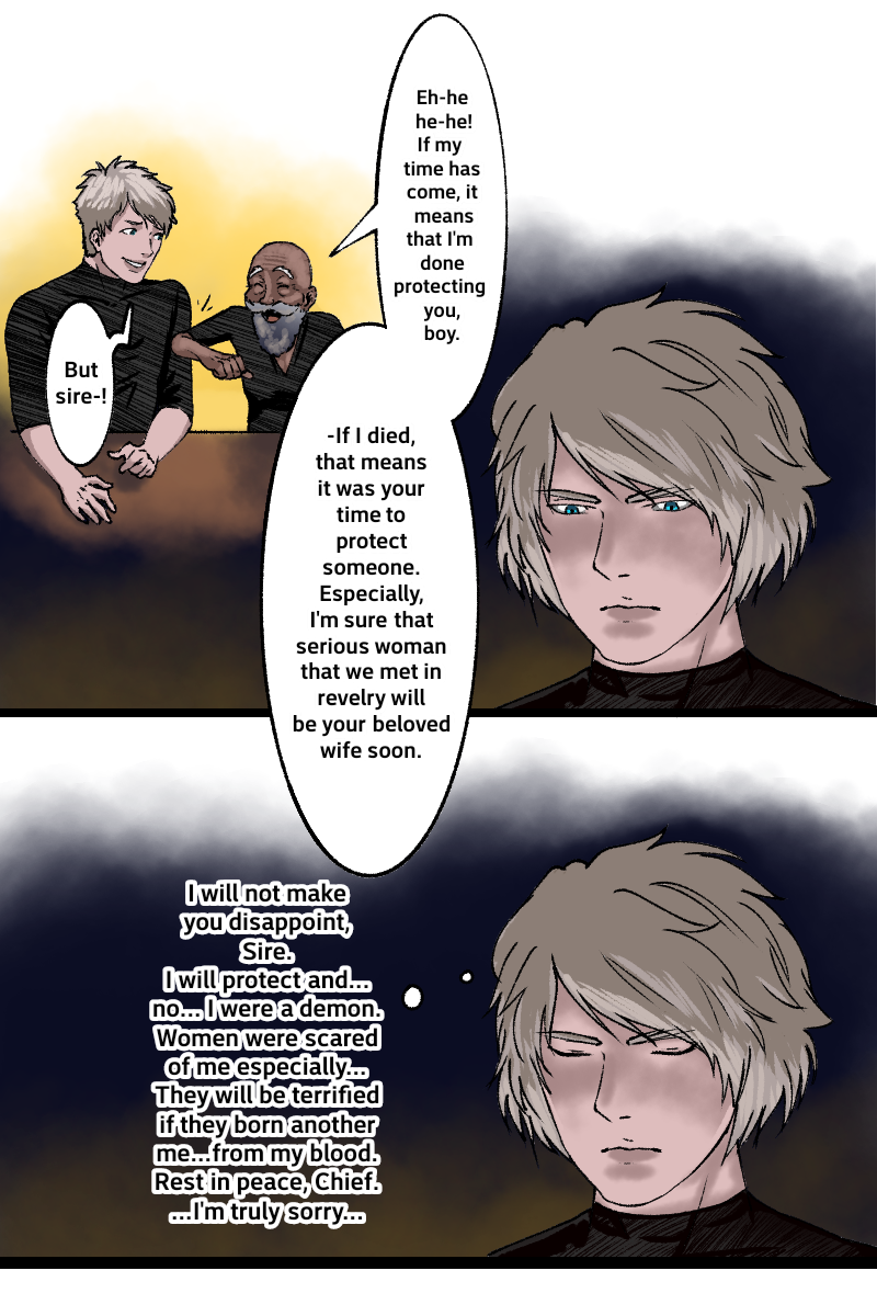 After few months of mission, the army of Pious arrived back home. Alucard's emotions made him terrified within once his closest old friend was gone. His friend dies brutally from the hands of demons. Kaye tries to comfort him but didn't accidentally slip down and failed to make him smiled.