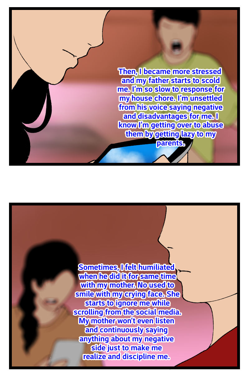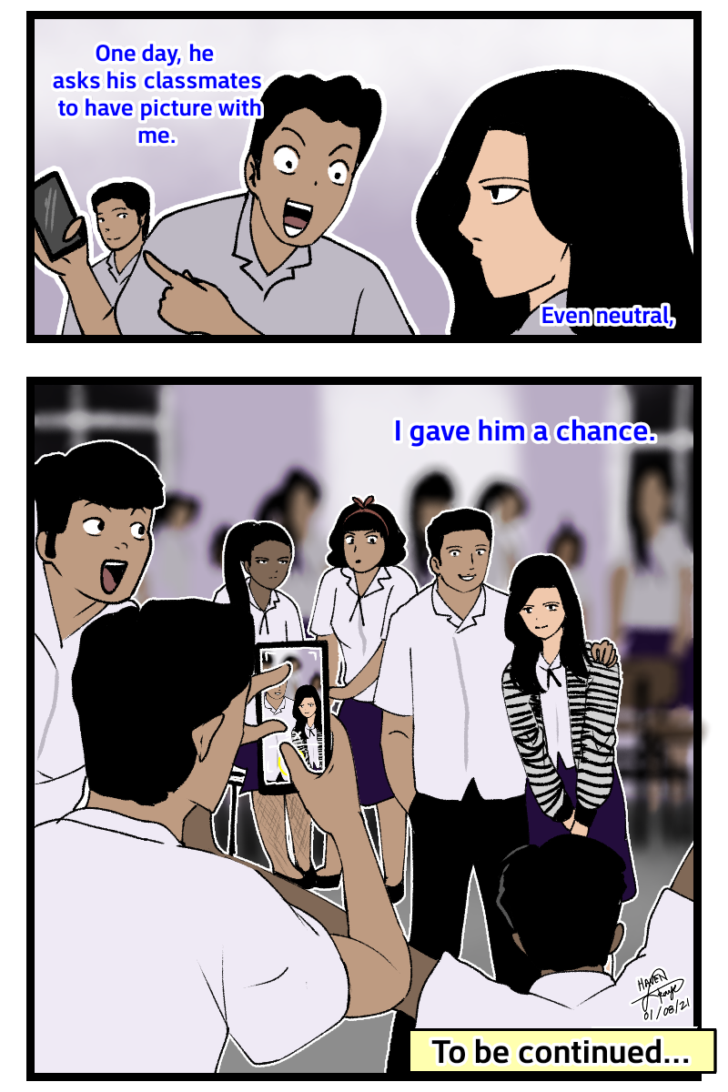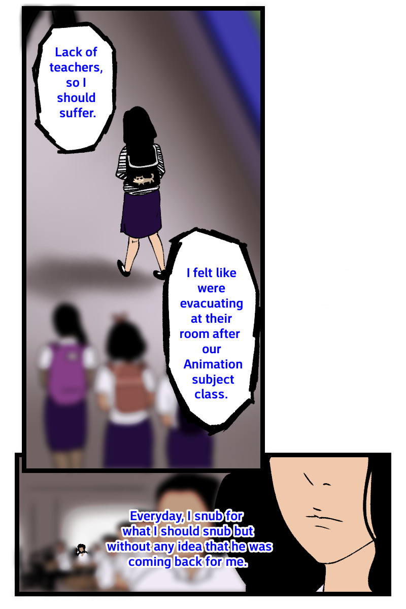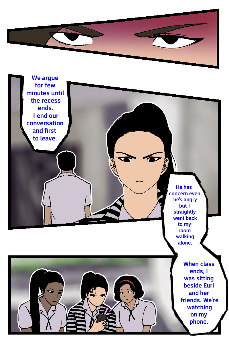 A/N: Colored fonts explained in the scene are based from comic illustrator's life