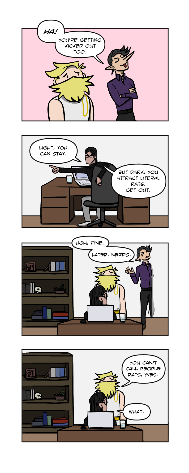 There are two divine beings in the world--Light and Dark--but they have no problems acting ungodly and being nuisances in Yves's daily life. And now some weird woman called Mina shows up claiming she wants to date a god? A guy just can't catch a break! Will Yves ever be rid of Her Clingy Holiness, and will Mina end up with the God she loves?