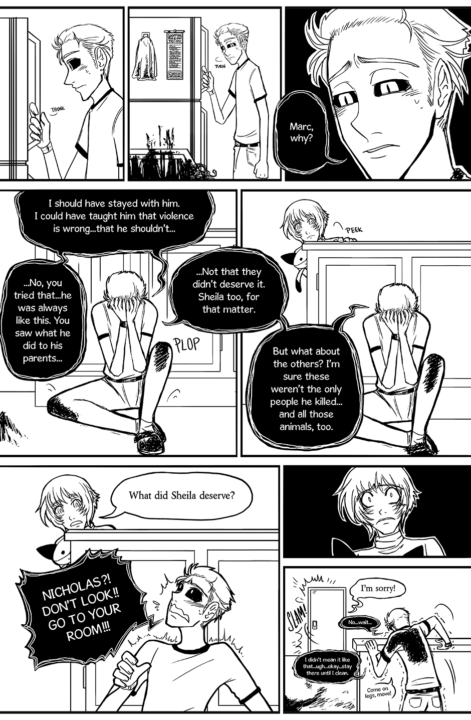 So that's what he was doing. On the refrigerator: Shopping & To-Do Milk Cereal Zip ties New socks Trash bags Bleach Detergent Ham Cheese Bread Cindy on Saturday