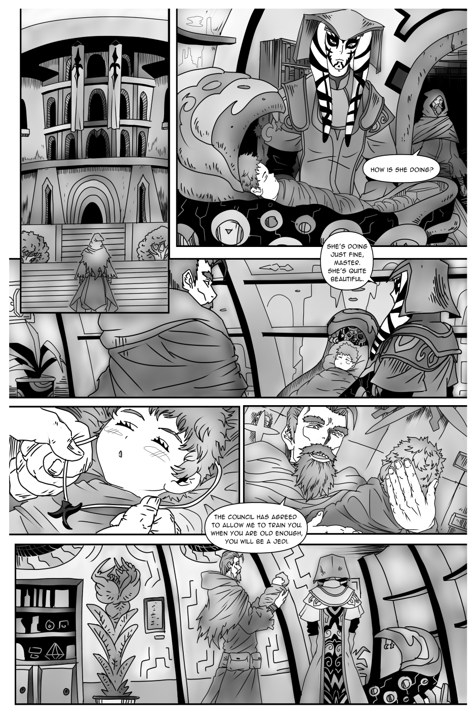 Reluctantly, the Jedi Council grants Master Tyrbus’s desire for Kira to be train as Jedi, when she is old enough. The Council’s decision did not met well with many of other Jedi, feeling having a Sith offspring in the order, breaks Jedi code. Lead by the ex-Jedi Zor’pur, he and other Jedi formed the Order of Purifier.