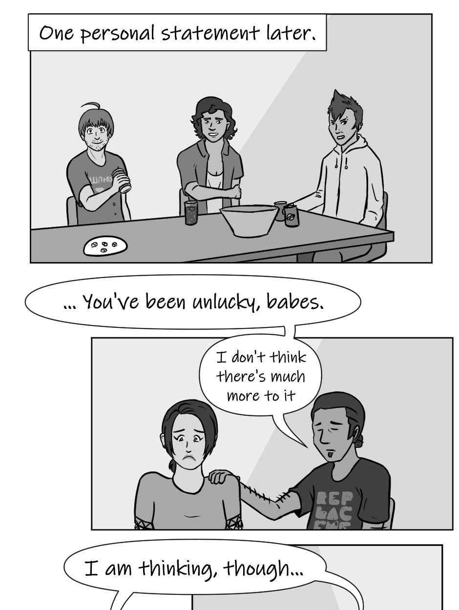 For some meta commentary, this update took me so long! I got food poisoning-like sick last week and I haven't prepared a buffer since I really thought I'd be able to ride sickness out well enough to not slow down too much. I just proved that's not the case so I'm going to slow down the next few updates to build up at least a week's worth of buffer. This also means I may start with an actual update schedule, too, which I'm actually not too up for given I like doing different lengths of updates. I'll let you know what I decide on that.
