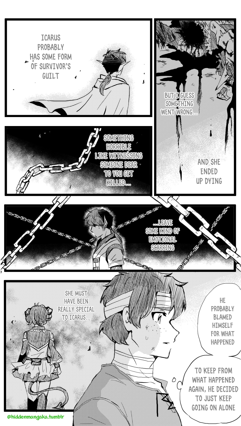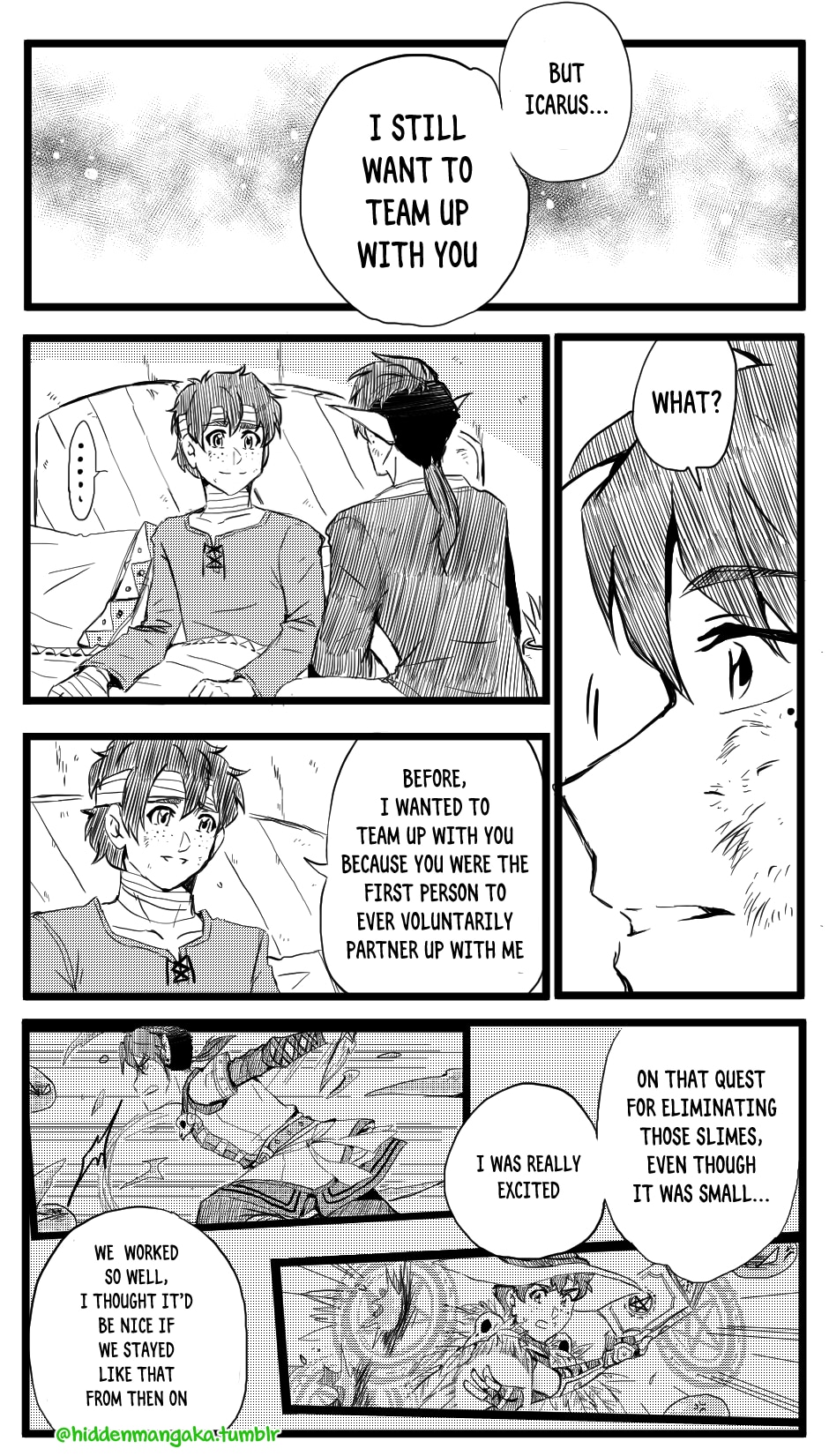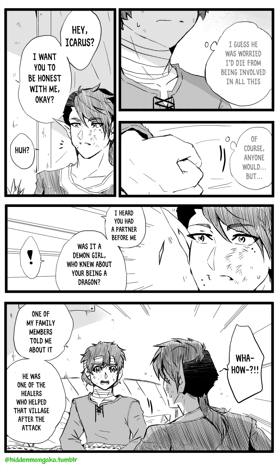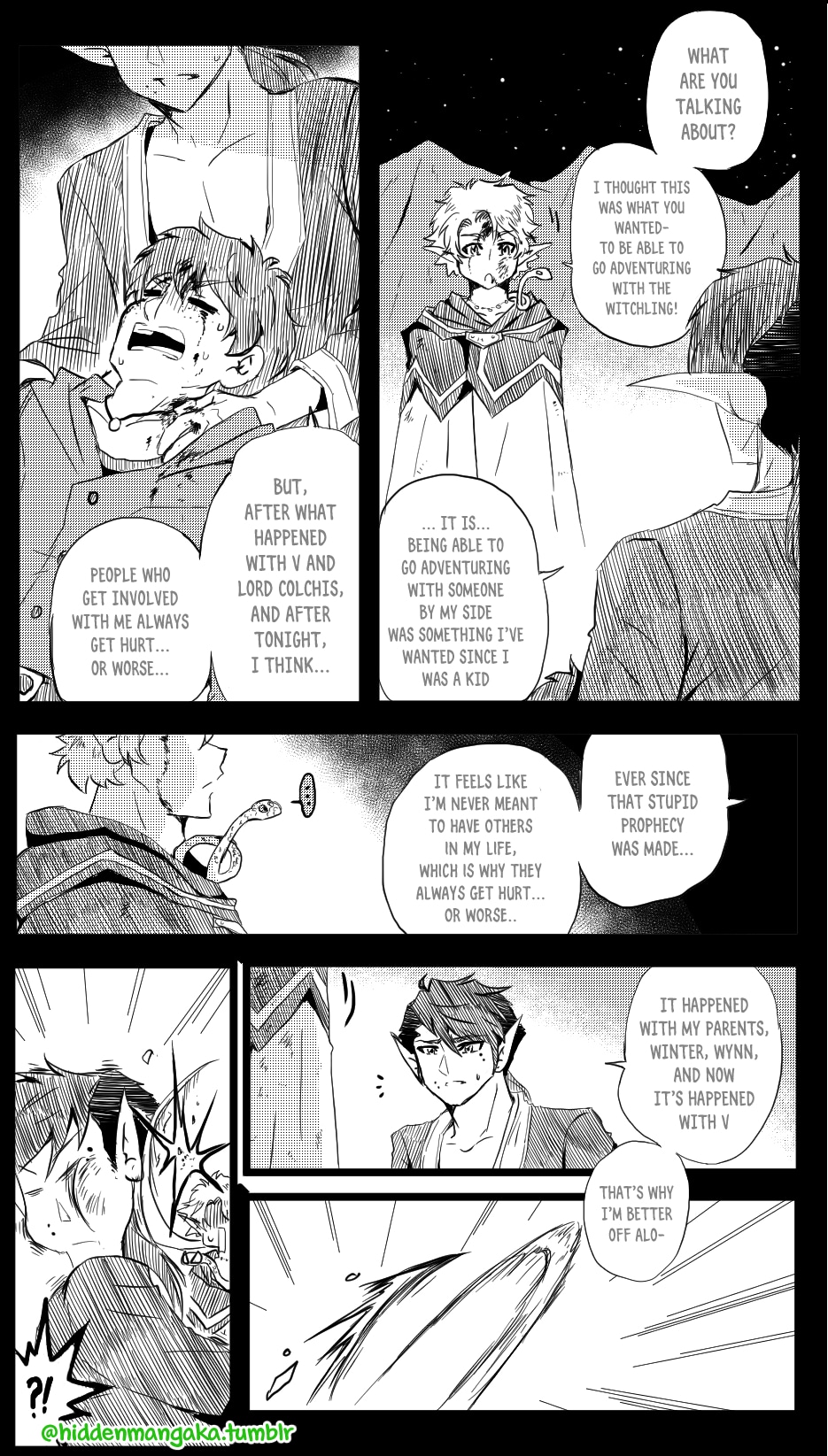 In this fantasy-adventurer AU, V (thekao) is a witch-class adventurer everyone avoids; due to his clumsiness and inability to perform his spells successfully in front of others, V is humiliatingly known by the other adventurers as "V the Destructor." But when the enigmatic Icarus (icarusmask) joins him, V soon gets involved in a crisis that involves Icarus and the entire kingdom!