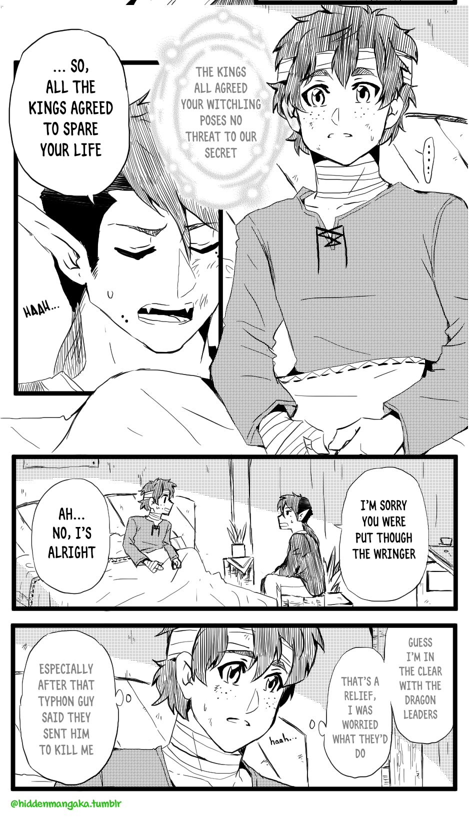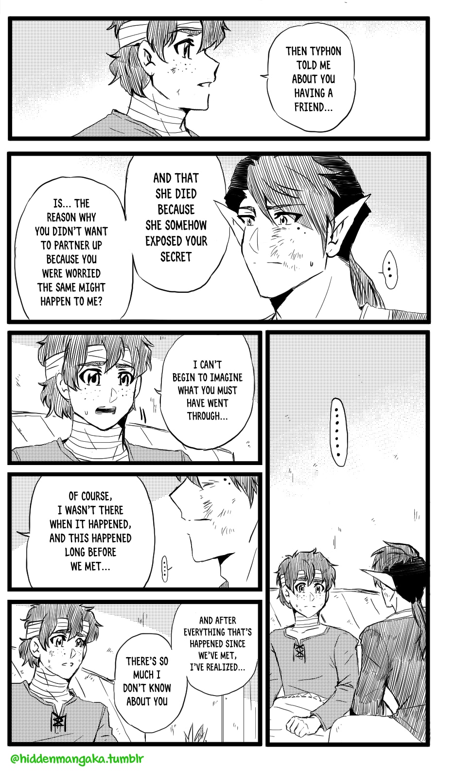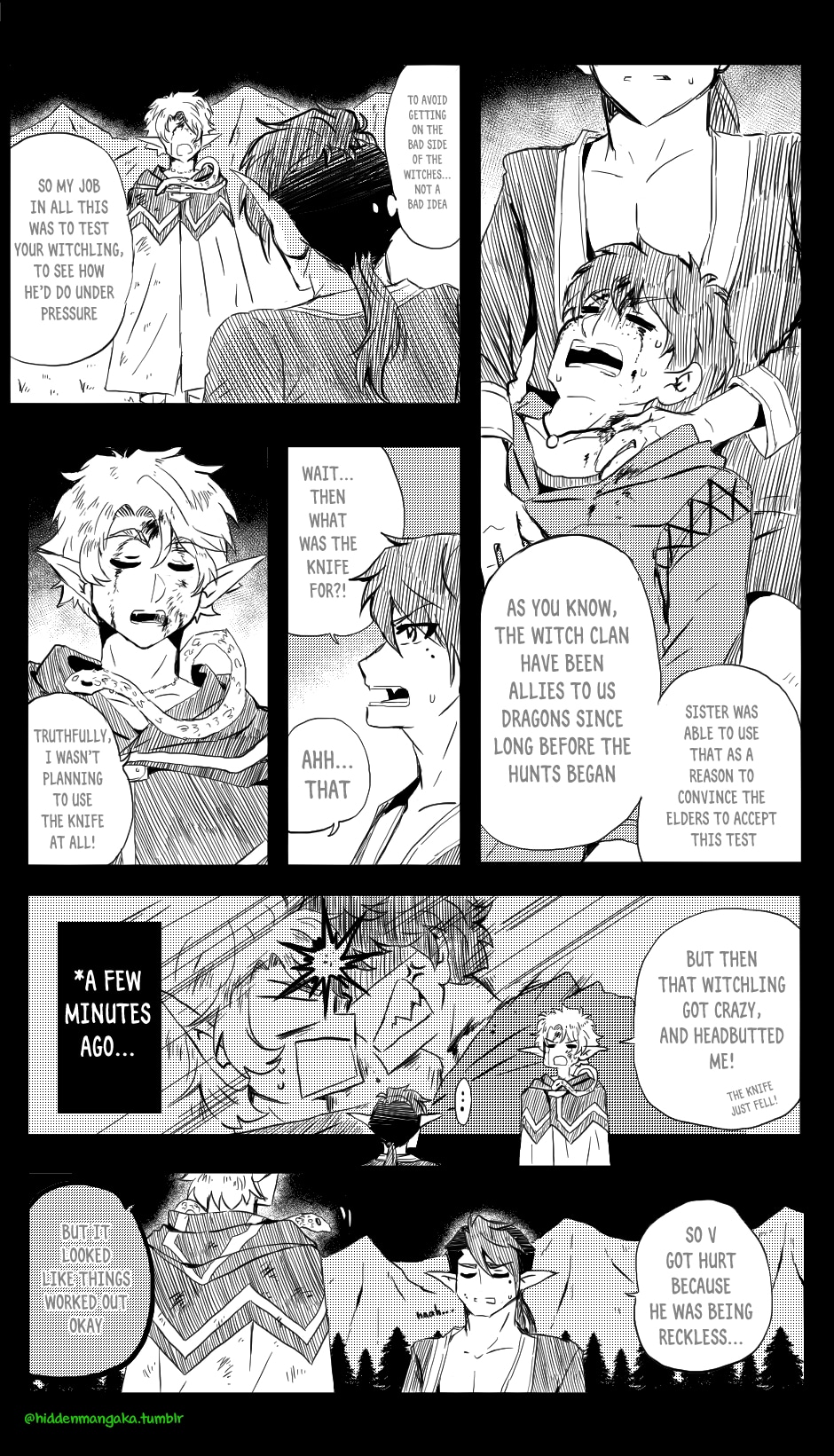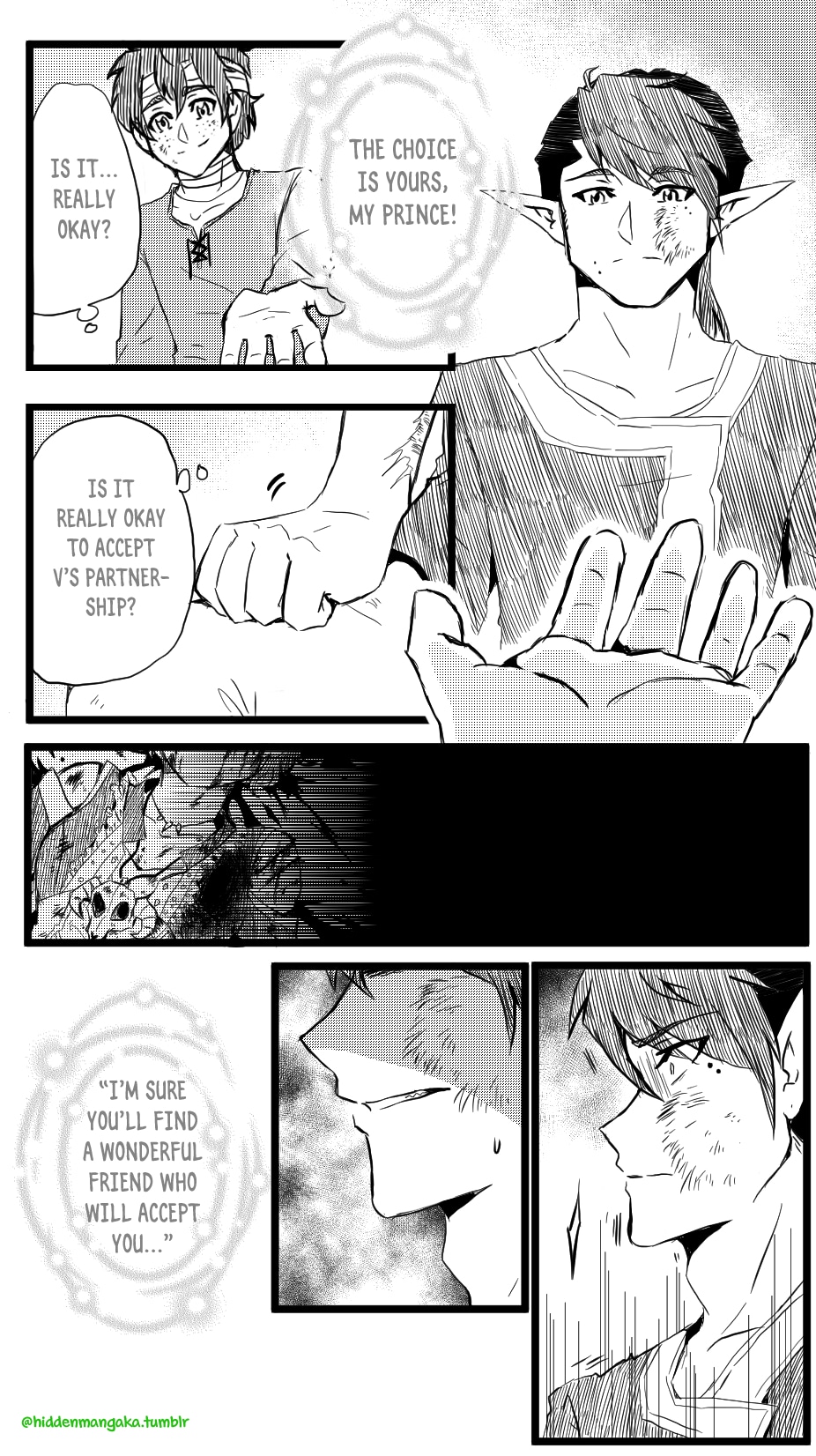 In this fantasy-adventurer AU, V (thekao) is a witch-class adventurer everyone avoids; due to his clumsiness and inability to perform his spells successfully in front of others, V is humiliatingly known by the other adventurers as "V the Destructor." But when the enigmatic Icarus (icarusmask) joins him, V soon gets involved in a crisis that involves Icarus and the entire kingdom!