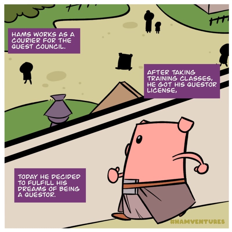 I'll be uploading my title called Hamventures here in Tapas. It started in Webtoon. It is a choose-your-own-adventure style of webcomic. Although the existing choices were already done, we'll see through as soon as the series caught up.