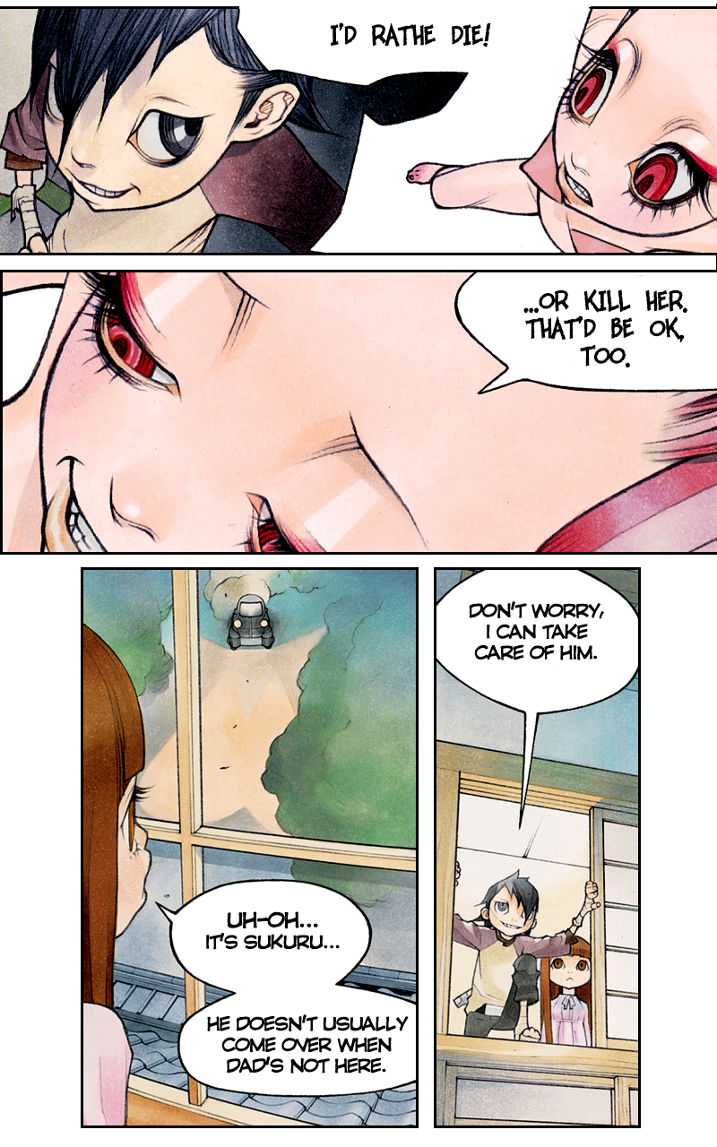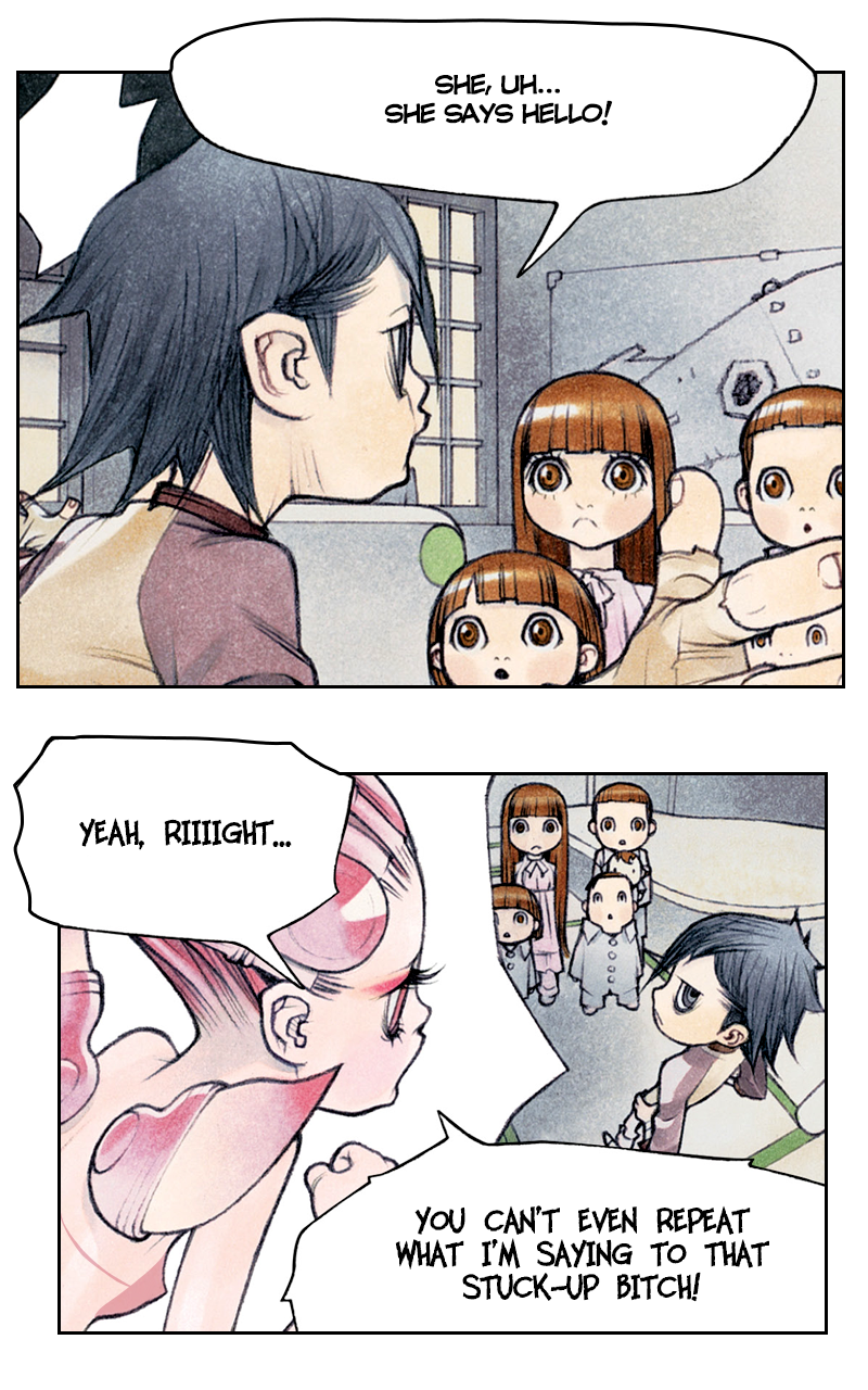 Piedro and Timm-Tamm prepare to lead Kumiko and her brothers to the seedy underside of the city. (Note: this sequence, starting with Ep01 begins about 25% into the complete story being published at www.smallworld-comic.com)