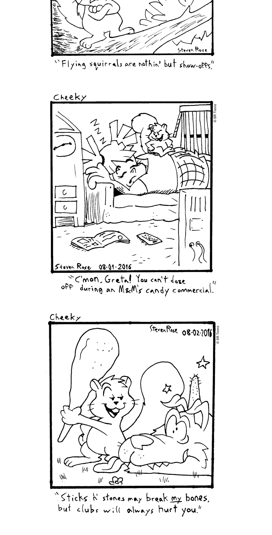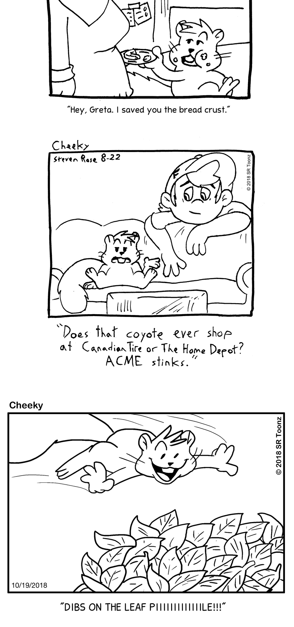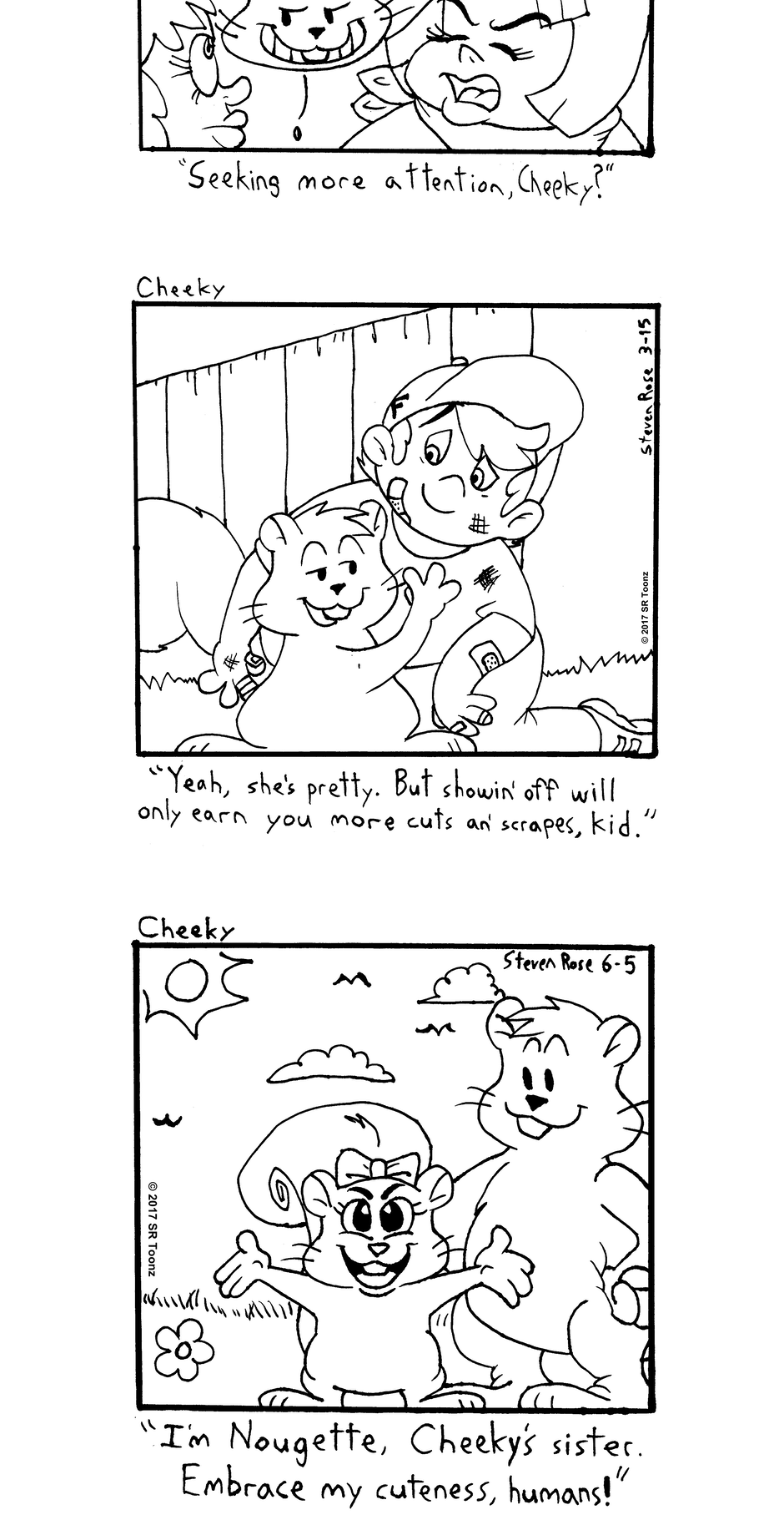 Whether it's tormenting dogs at the park, romancing with Miss Pin-Up, trying to lift the spirits of timid young Franklin Fowler, hanging out with Greta, or just causing destructive mayhem, Cheeky (and his little sister Nougette) gotta do what a squirrel's gotta do!