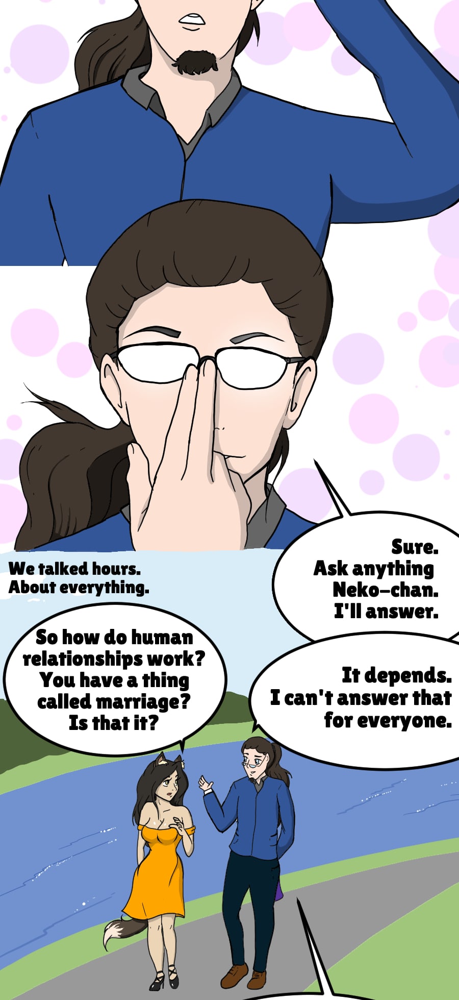 The Neko-chan series tells the story of a cat girl Iona and an ordinary nerd boy Ivan. What kind of future can a couple have as far apart as beings but close on an emotional level?