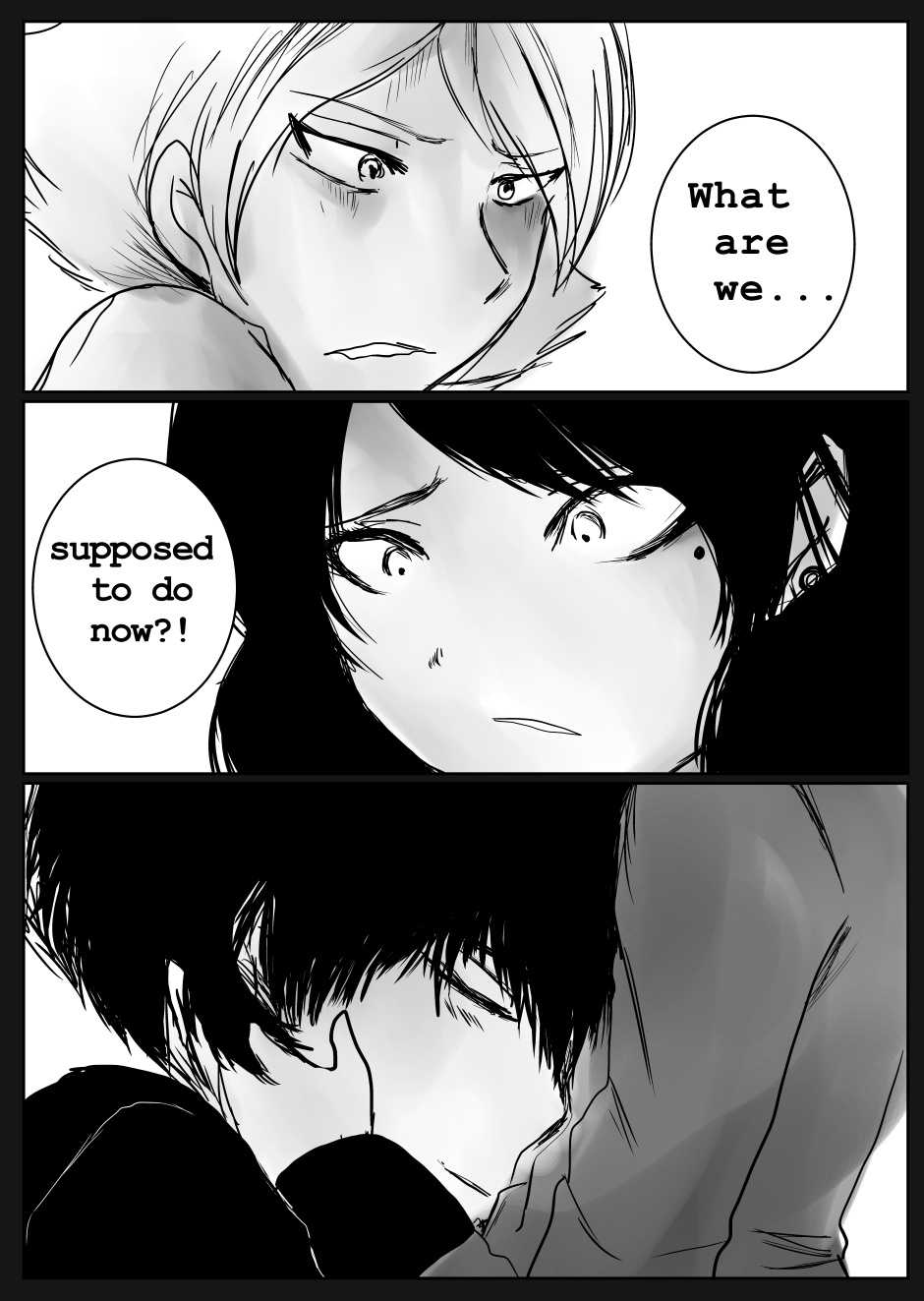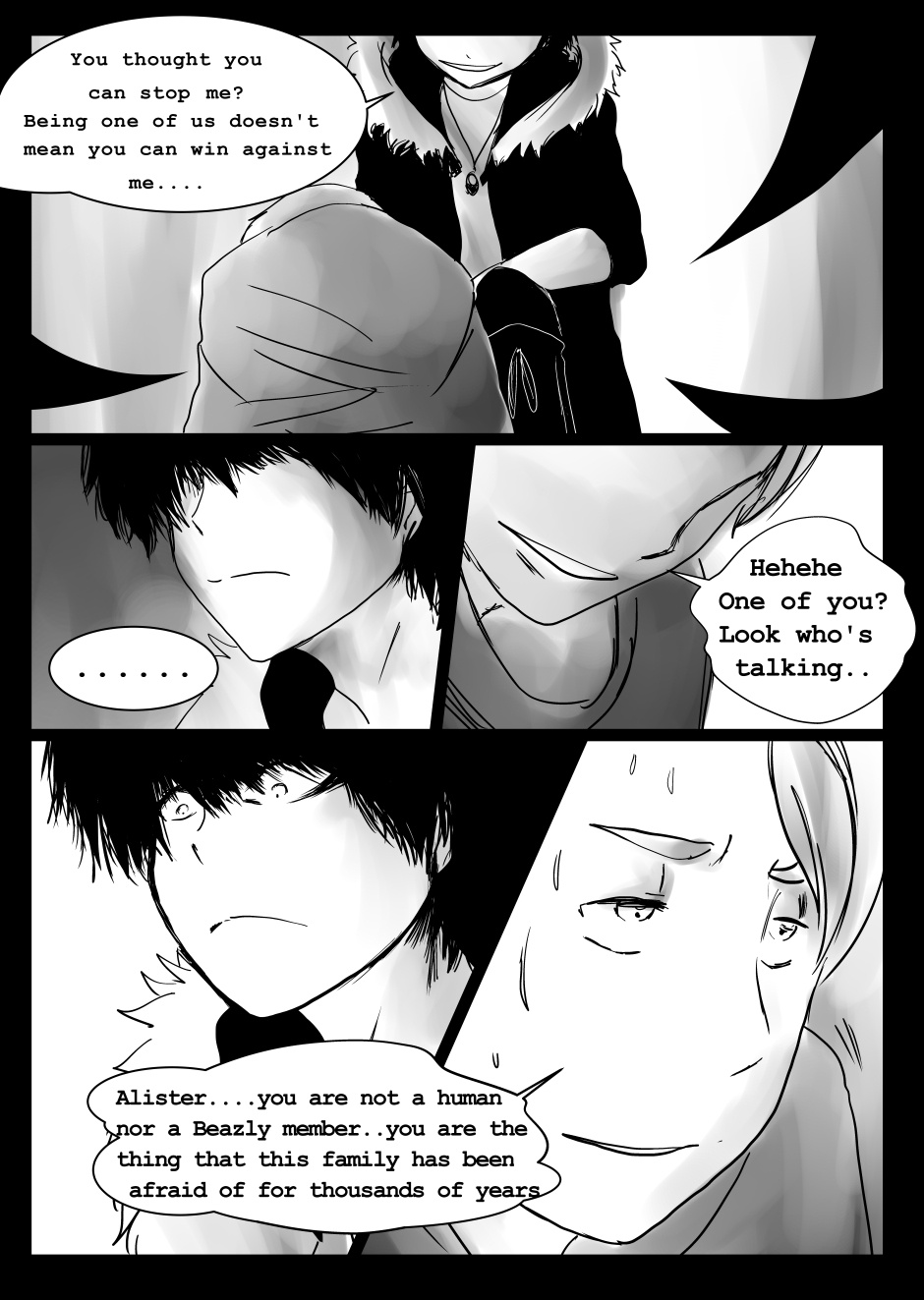 Ok, some things are beginning to make sense... But the story's still a bit confusing. ...Even so, this story has hooked me! I want to find out what happens next and what happened in the past. You, dear author, are amazing. The perspectives you use and the expressions you draw and the feels you create are very well done!!! :D