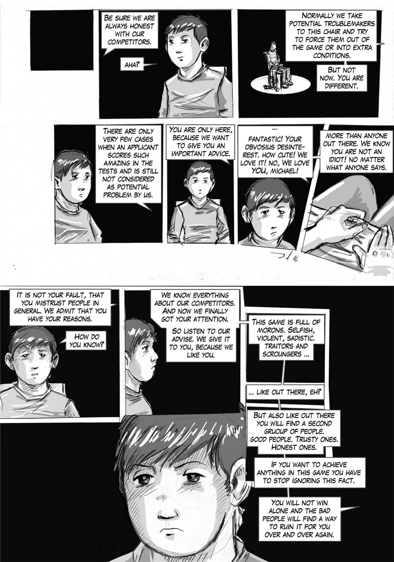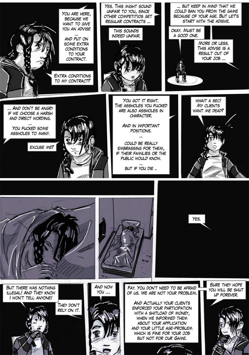 nce you are in this Game the only way to get out is to win it. The only way to win is to find out how to win and of course to survive. So watch for every hint, grab every stuff, avoid getting killed and never ever break the rules! ( See how this comic is drawn on twitch www.twitch.tv/shejot )