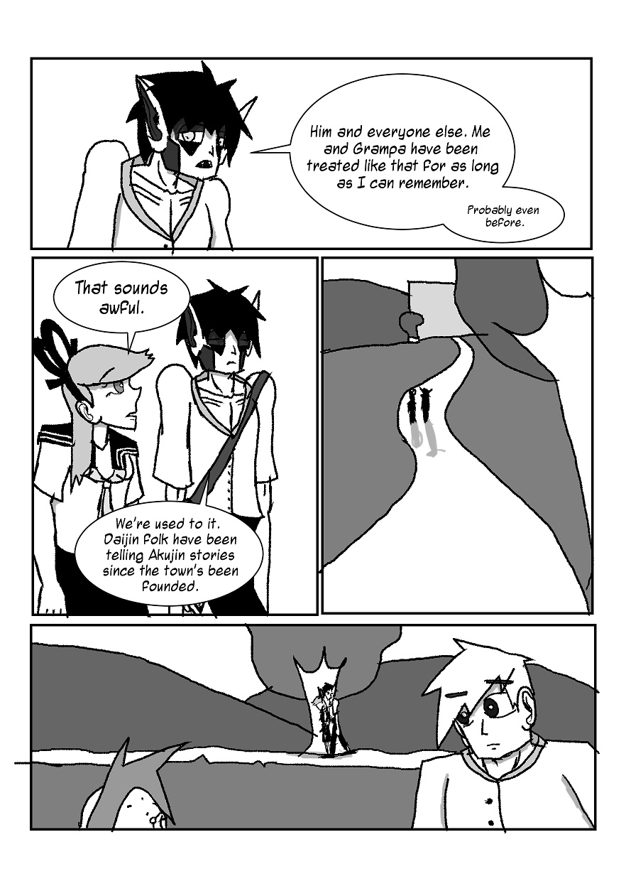 Aya Chihiko is a normal, 16 year old high school student transferring from the city of Kyoto to the small town of Daijin. She's heard the rumors of the Demon King. And she doesn't care much. But that changes when she meets the school outcast Toru Akujin. Intrigued by the stories about his family, Aya follows him home, and learns that this strange young man might know a thing or two about the Demon King. And, maybe, how to stop him.