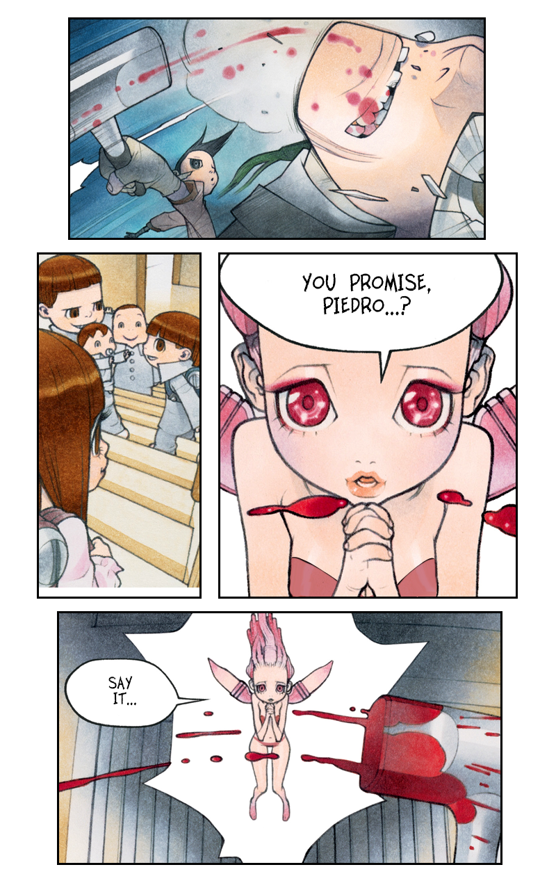 In a hi-tech future, rich kids enjoy virtual trips to “Small World”, a simulated visit to the slums of the lower city, using secret programs to hack their bedtime Dreamweaver devices. Piedro is their guide through these seedy adventures, a lowland local who few ever meet in real life. But young Kumiko and her brothers are surprised to find Piedro in their garage fleeing from the evil Captain Gancho. Suddenly their virtual adventure becomes real!