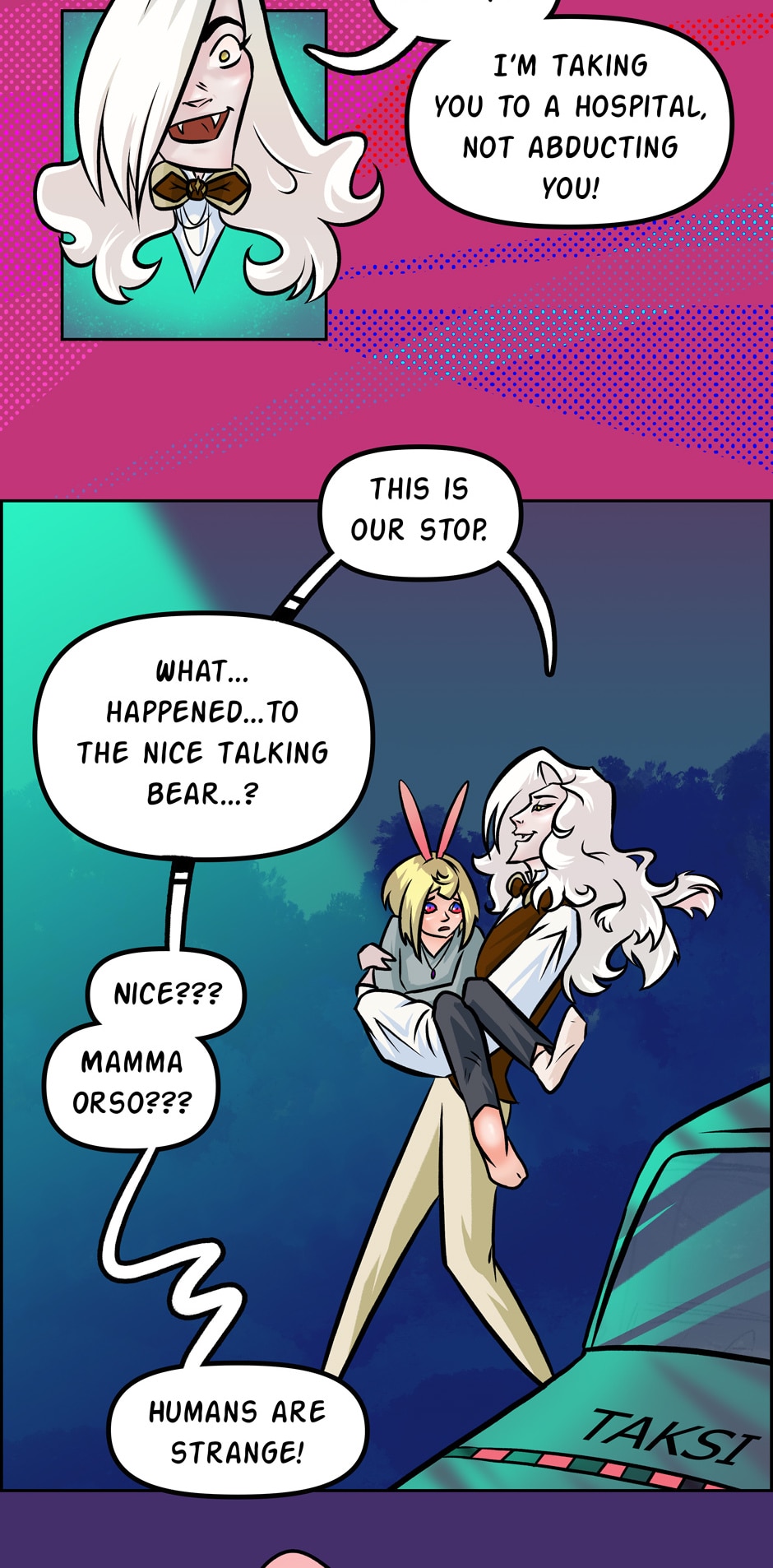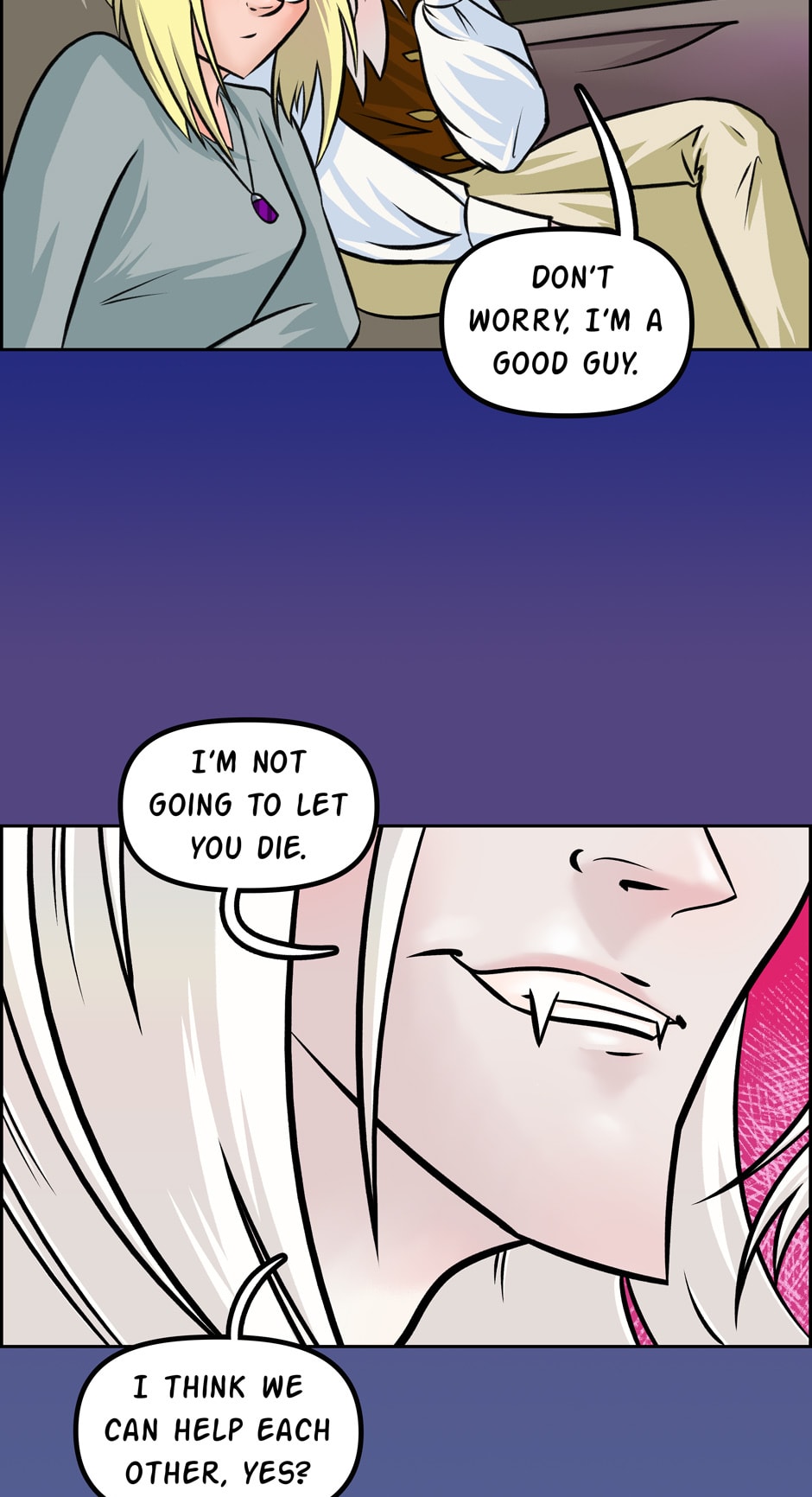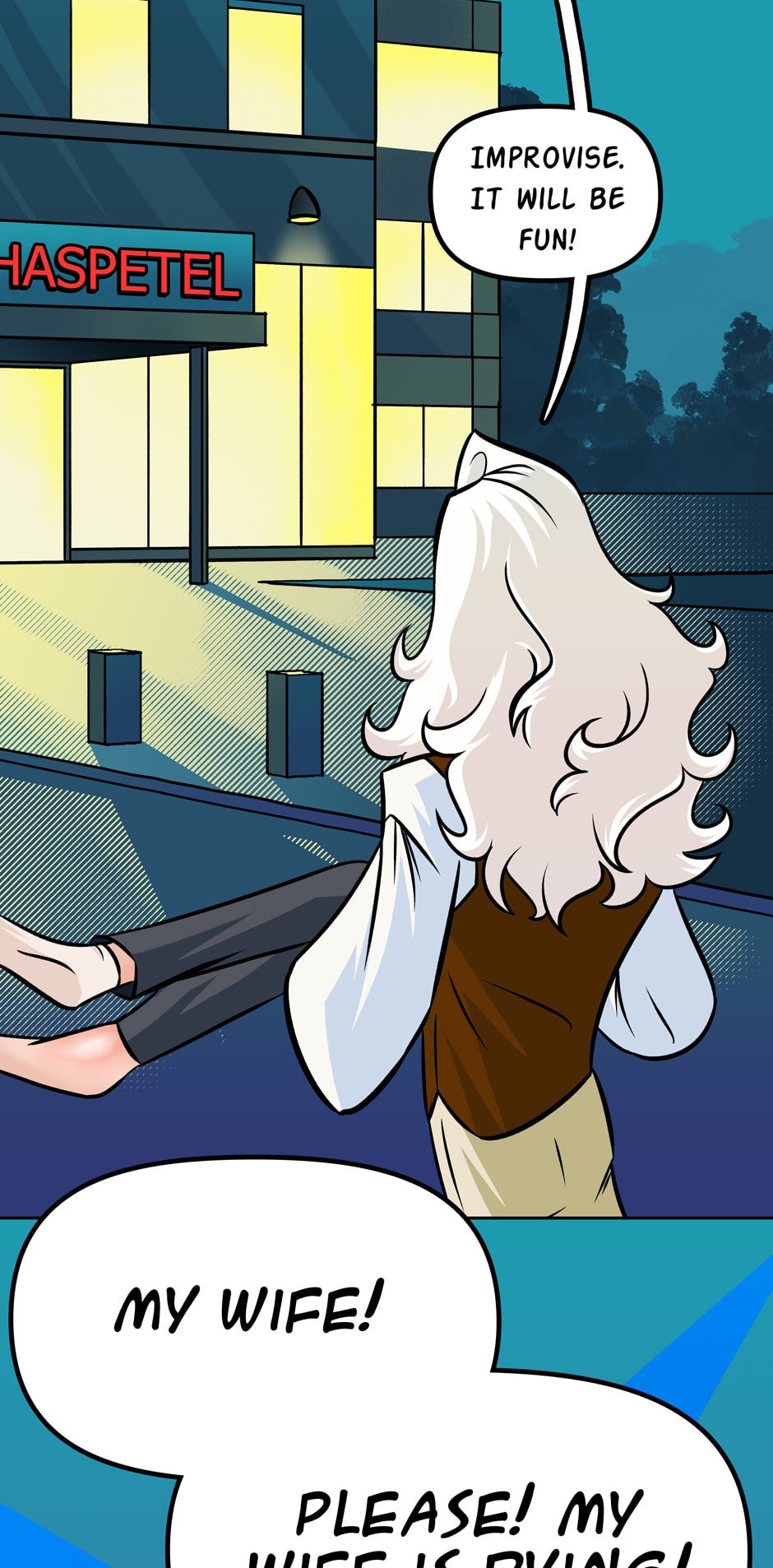 Djali's back, trying to be a Good Samaritan--struggling to keep this stupid human alive.