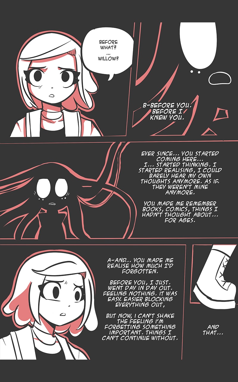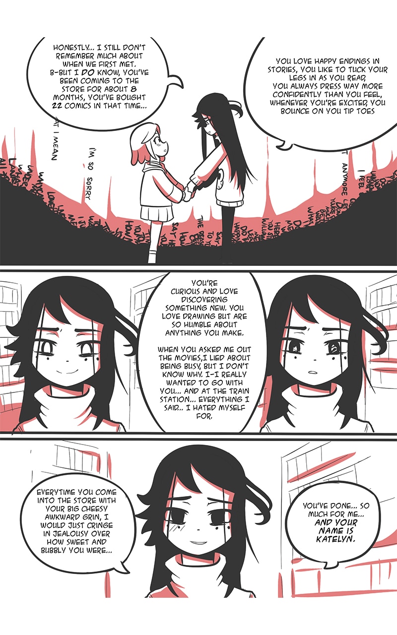 Katelyn has a Crush on Willow, An aloof woman who works at a comic store. She tries to connect to her via comic books, but Willow seems to just keep forgetting Katelyn even exists...