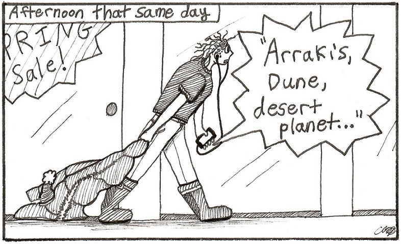 This comic was my submission for week 2 of the #frombooks2comics challenge on Instagram. This week's prompt was sci-fi, so I had to reference one of my favorite novels of all time: Dune. This book changed my life in so many ways, and I am so nervous excited for the new movie to come out!