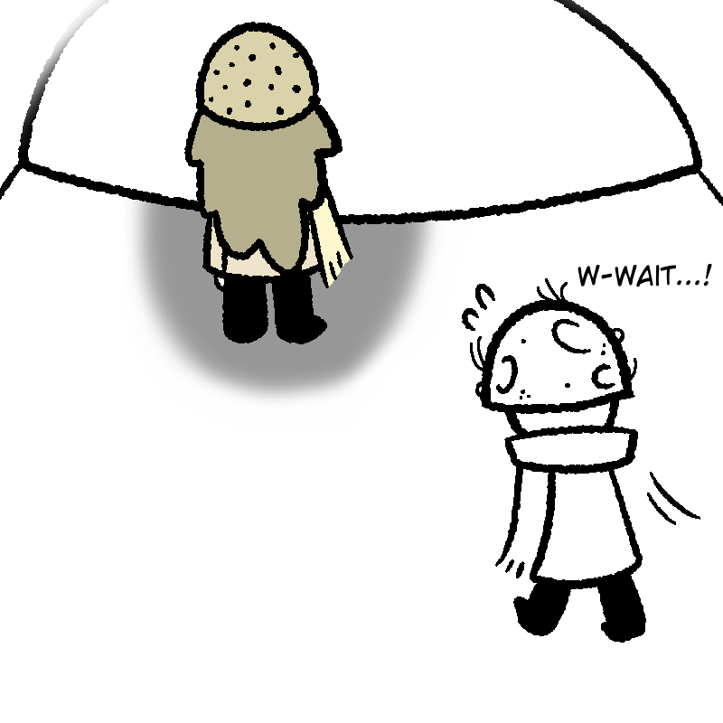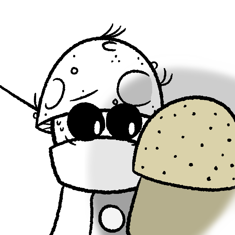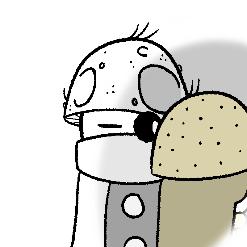Mushroom George lived most of his life in the smallish town of Halsley, with a job at Capcorp as a paint watcher. After a long period of planning, he set off on a long journey throughout the land to find the big deciduous tree he'd read up on some time ago. Soon enough, his boss noticed he was gone... and replaced him. But after a while, the rest of the townsfolk started to worry for Mushroom George's safety. No one ever leaves Halsley. Everyone's safe from everything in Halsley.