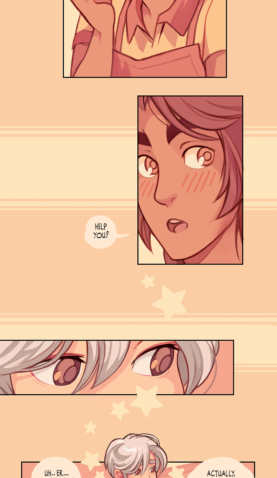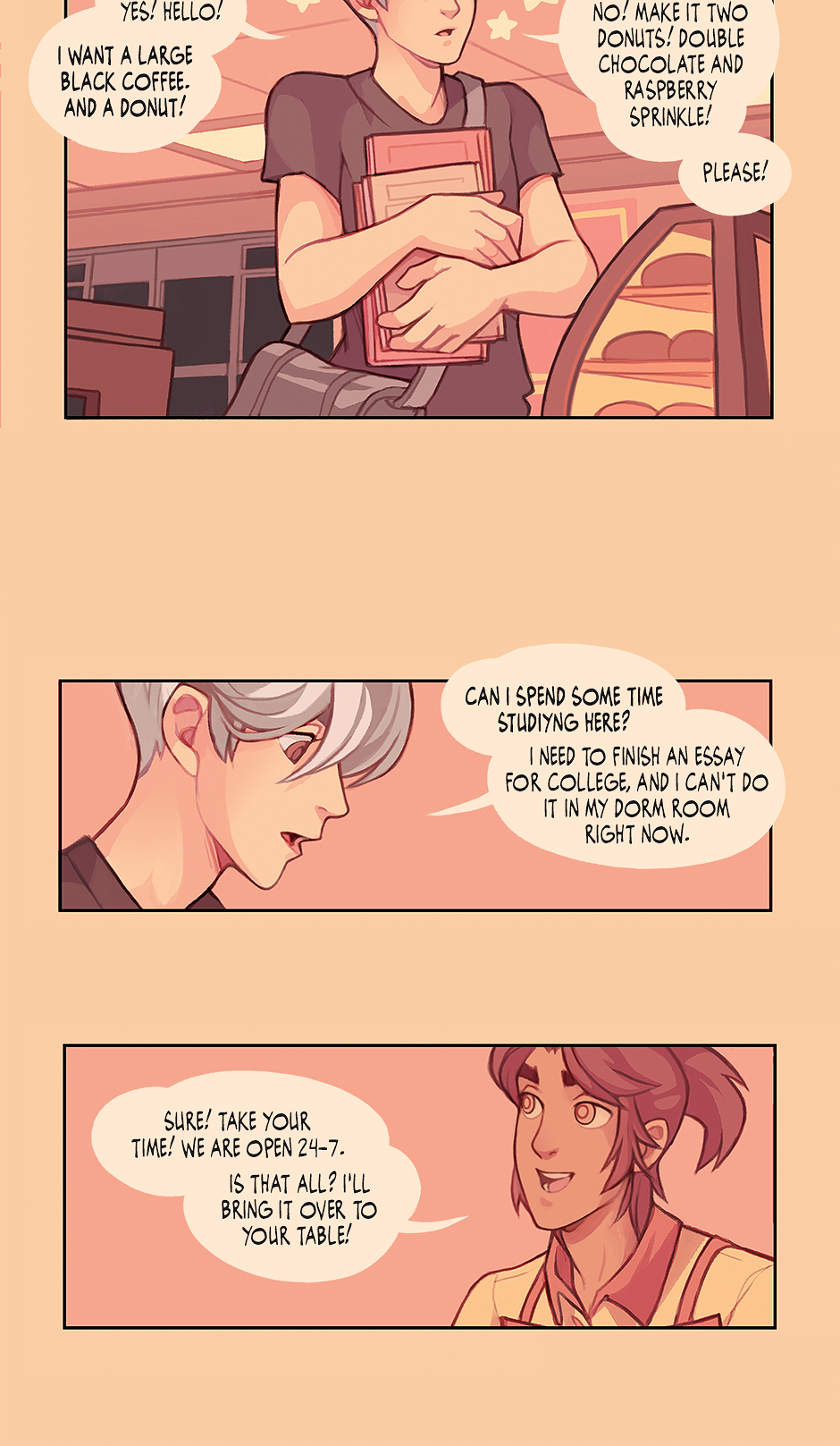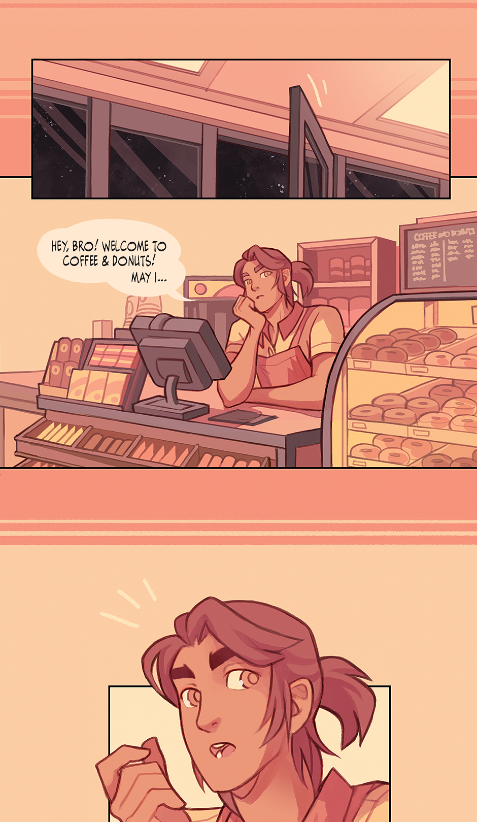 Cosmico is a BL / LGBTQIAP +, ongoing webcomic series about the growing relationship between Marco, a cheerful aspiring barista, and Theo, an introspective astrophysics student.