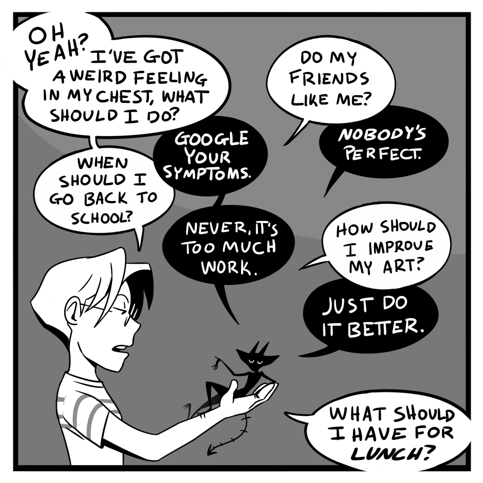 A comic about dealing with anxiety and a harsh inner critic.