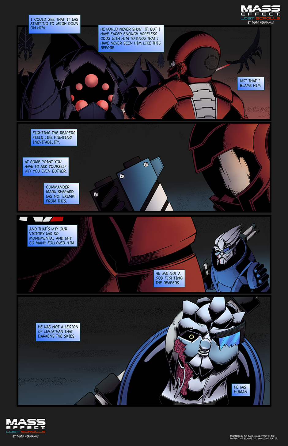 Mass Effect Lost Scrolls follows the crew of The Normandy as they are led by Commander Maru Shepard during his duties as a Spectre under Council Space.
