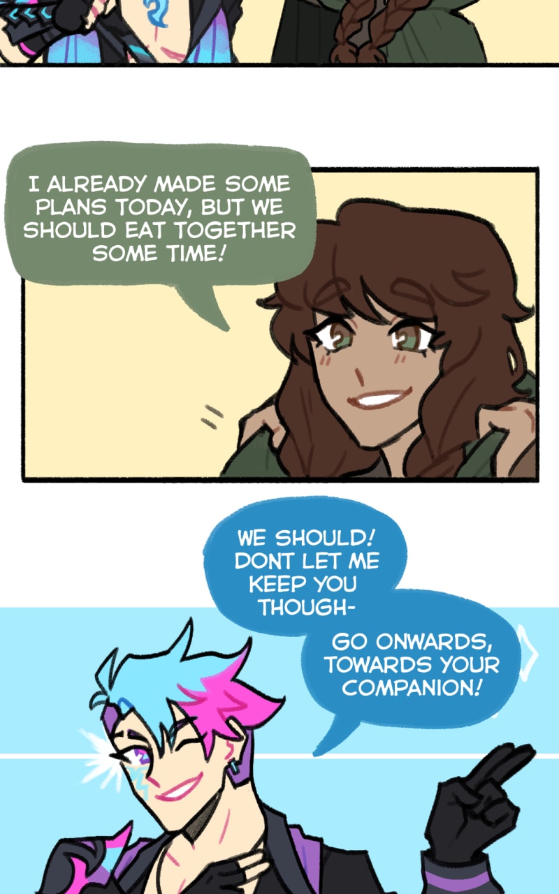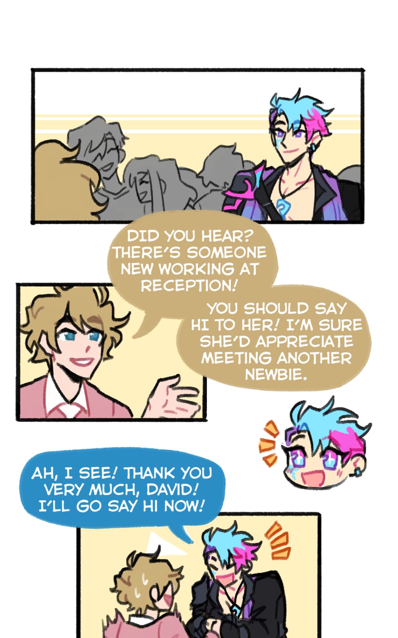 Well... Better late than never? Let's just say neither of us expected the pandemic/real life to hit as hard as it did, and well... That set back a lot of progress on this project, for sure. However, as you can see this is a story we still very much want to tell! So! Sorry for the delay, and we hope you'll keep an eye out for this silly little comic. <3 -Pika