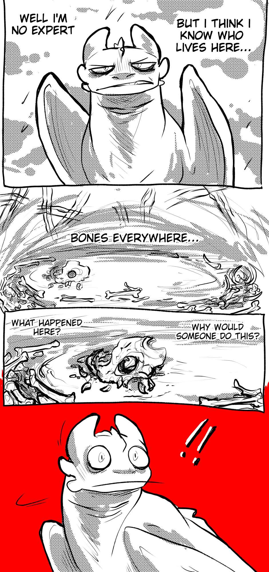 I am little confused by these panels but maybe it is just me. If Artemis understands this Chainsaws place, but doesn’t understand why there’s bones? Does she not understand that he eats the other dragons yet?