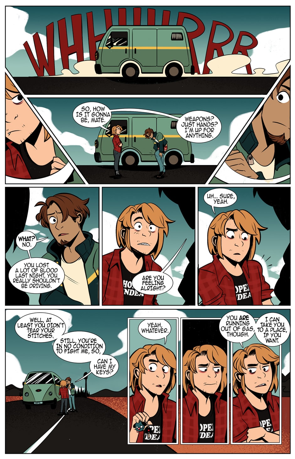 It's the end of the world, baby! Two survivors of a state-wide apocalypse become begrudging friends as they navigate the difficult process of confronting a bleak future, finding a sense of purpose, and trying not to get killed by flesh-eating deer.