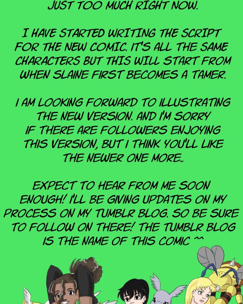 I will only pose to webtoon from now on. Just search for digimon tamer slaine and you'll find it there! Hope to see you there!