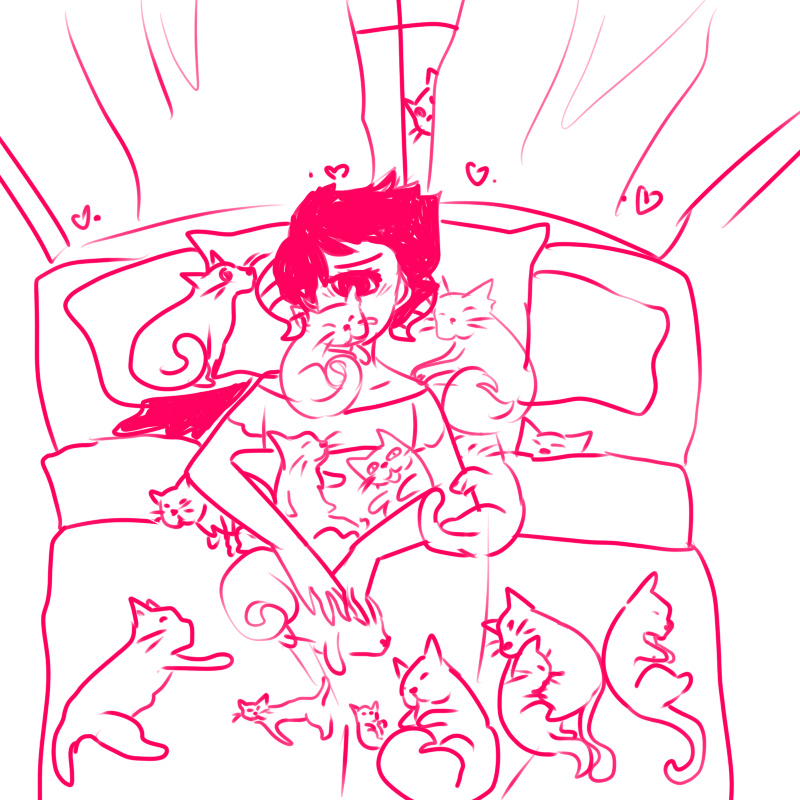 so he proceeds to adopt 100 cats and buy so many dresses