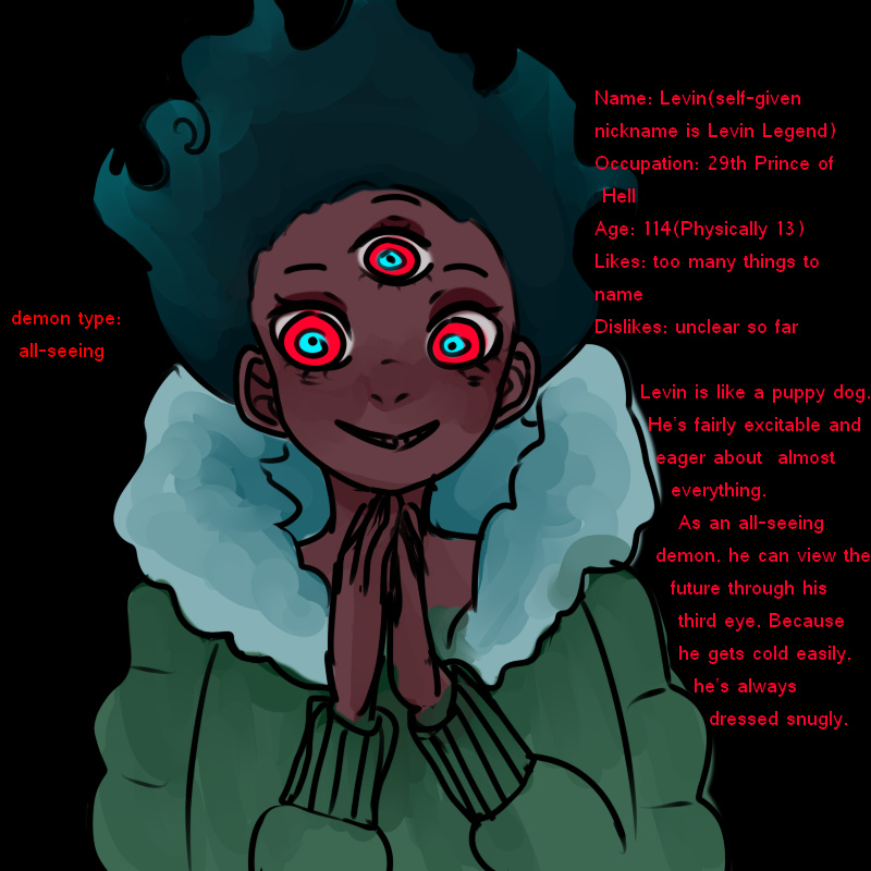 Rakkuen is a prince cyclops demon who left Hell to escape his bullying brothers. When he arrives in the human world, he discovers he absolutely adores human fashion and most of all, cats
