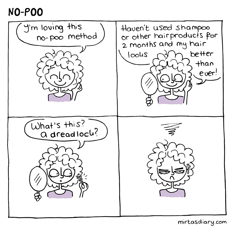 Trying the No-poo method for some months now. Doesn't go smooth all the time with my curls, especially when I only have acces to cold water showers :P But it saves money and space & weight in my backpack though ;)