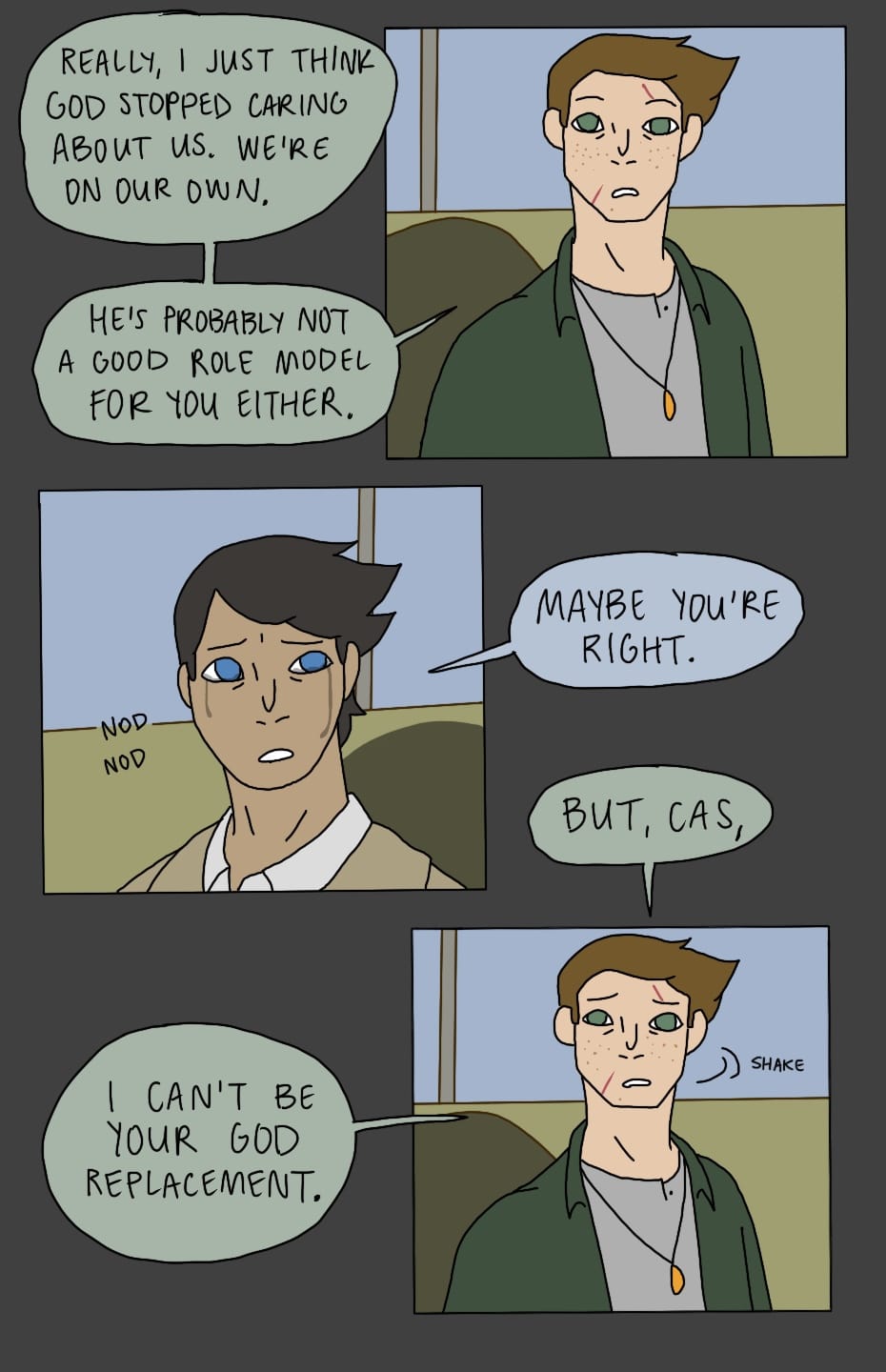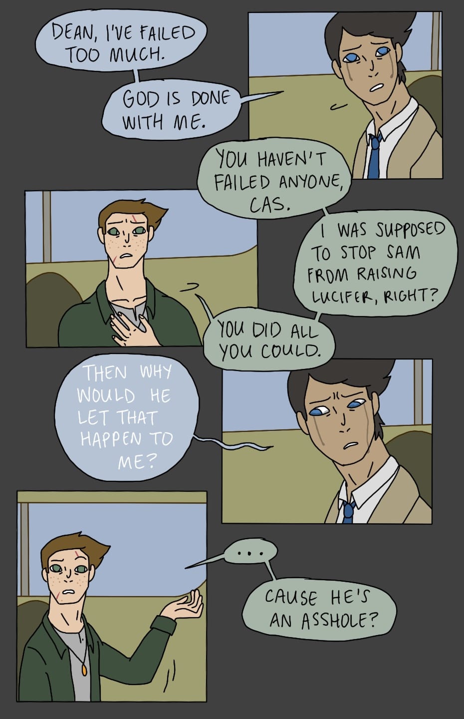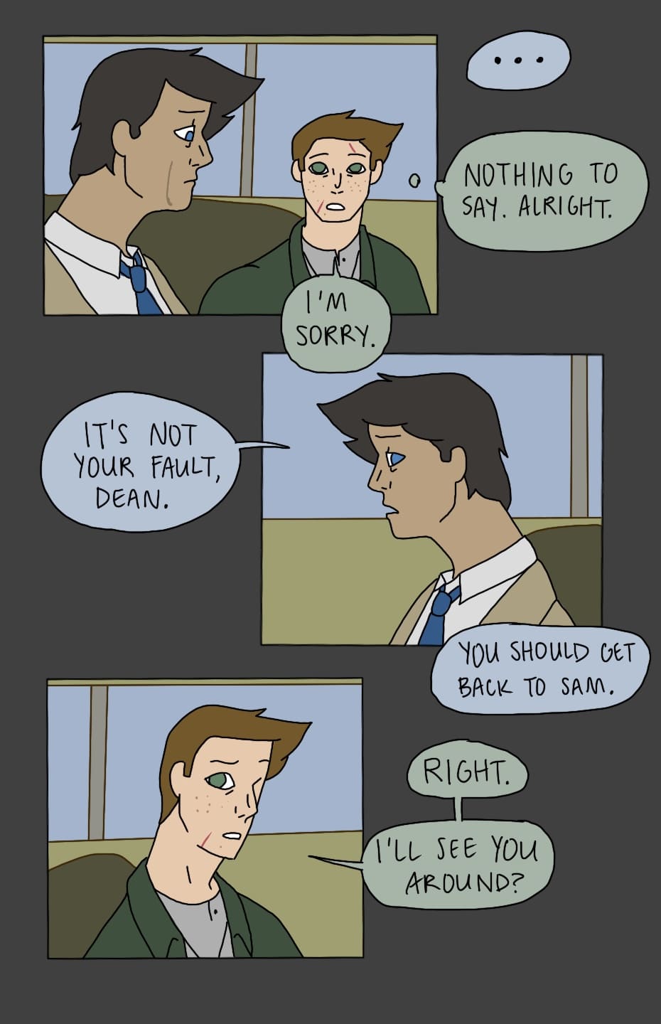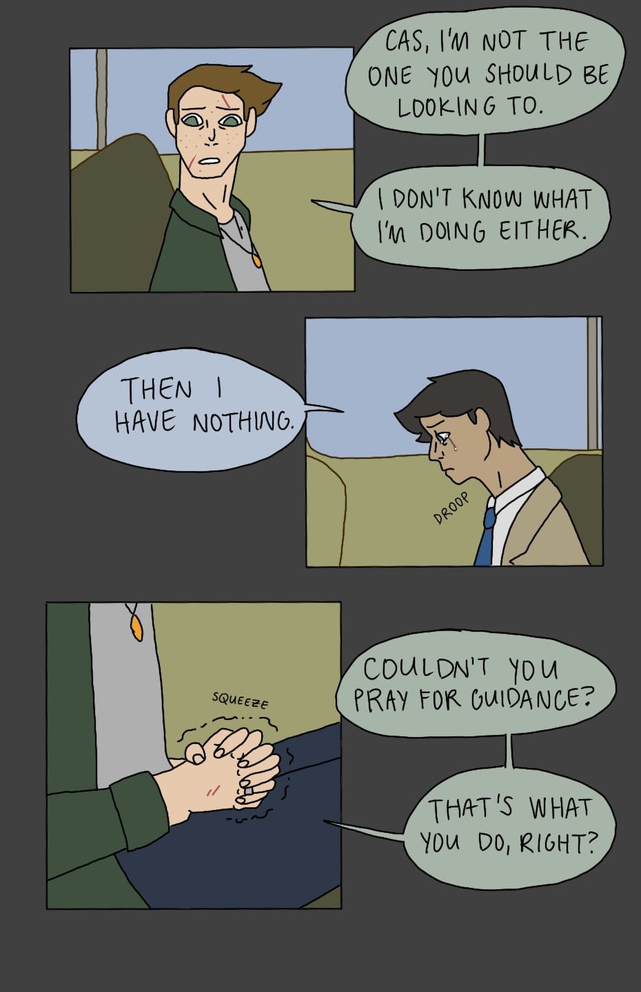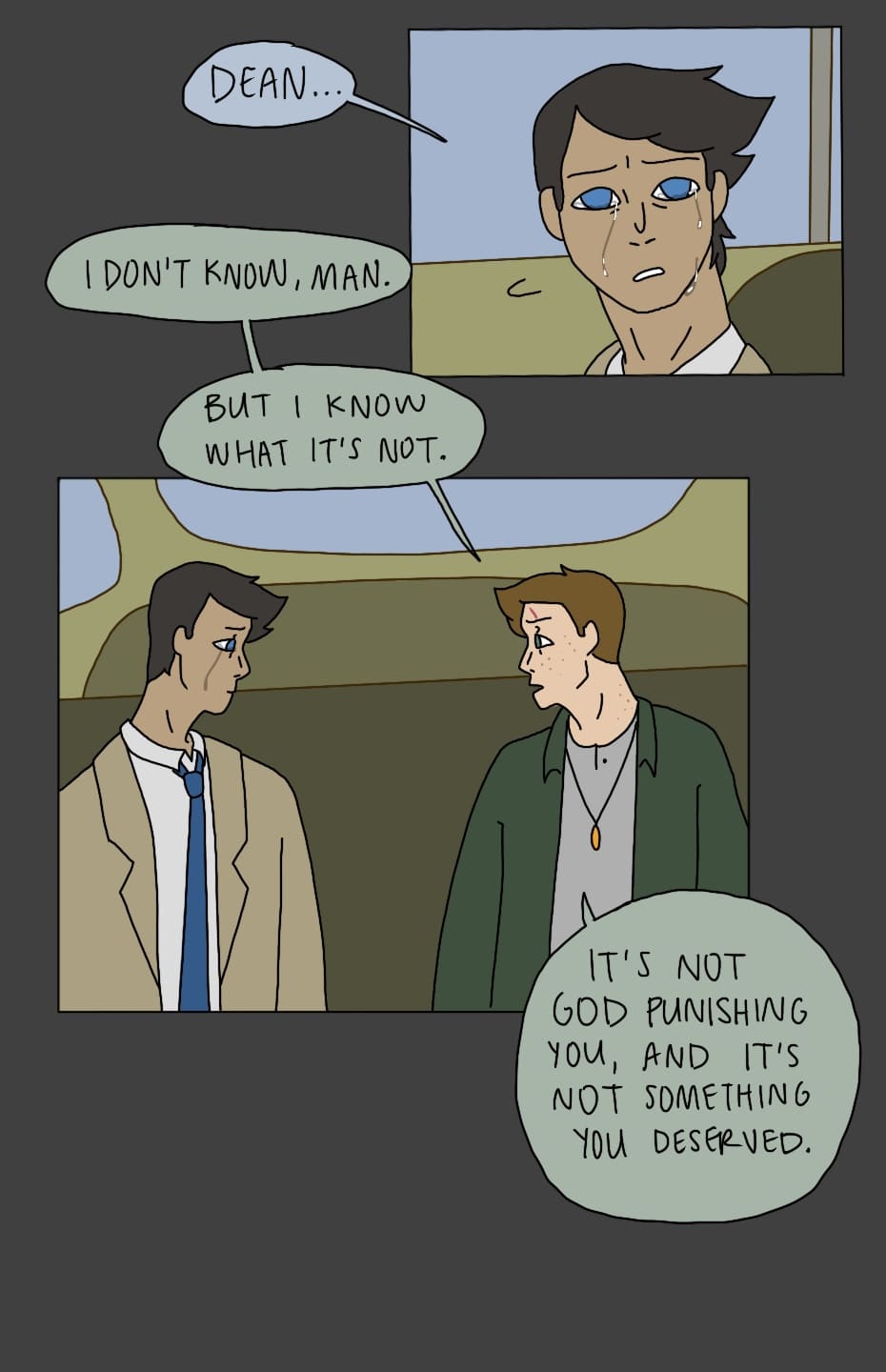 (Sorry this update was a few days late!) Dean and Cas continue their conversation in the Impala.