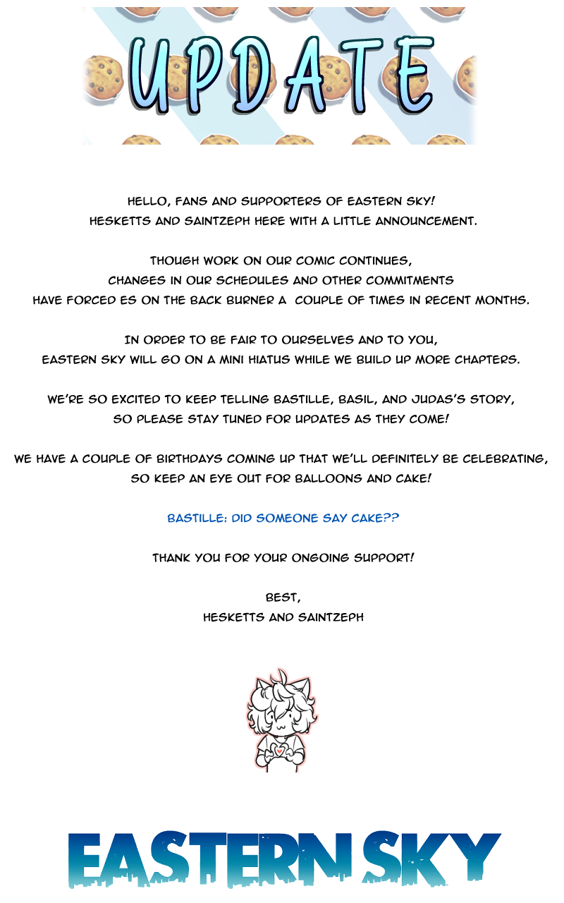 Eastern Sky is a slow-burn slice of life BL set in a world where cat people coexist with humans! In the city of Monrowa, 17-year-old Bastille Heskett's world takes a drastic turn when a new guy moves into the apartment he shares with his friend Basil. The new guy may be alluring, but he's way too secretive. What doesn't he want Bastille to find out? Made by LGBTQ+ creators Hesketts & SaintZephyr