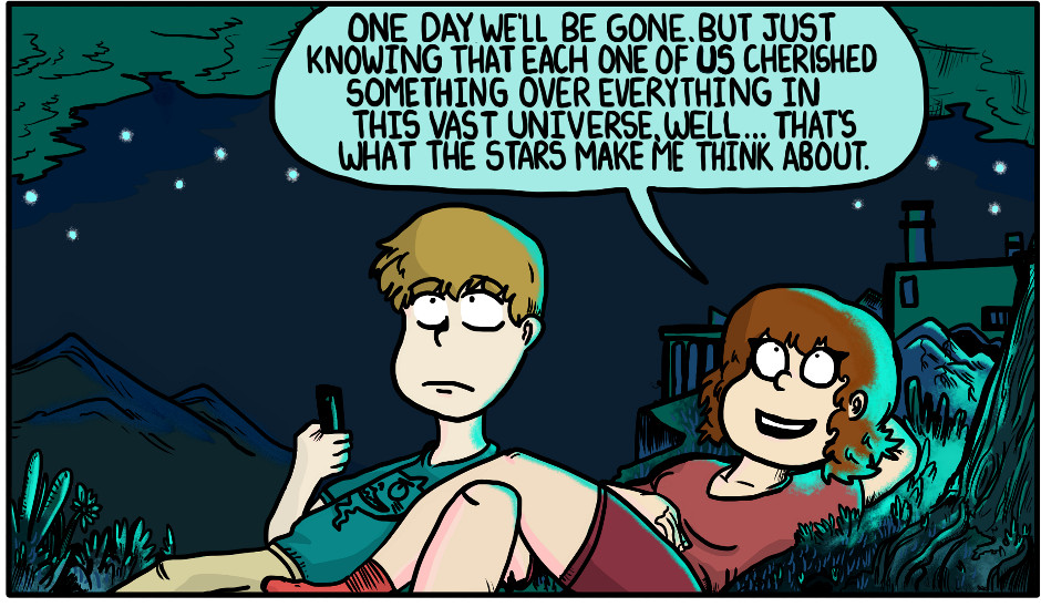 I think they're made of "balls of gas burning billions of miles away" but they could be fireflies that got stuck in that big blueish blackish thing.