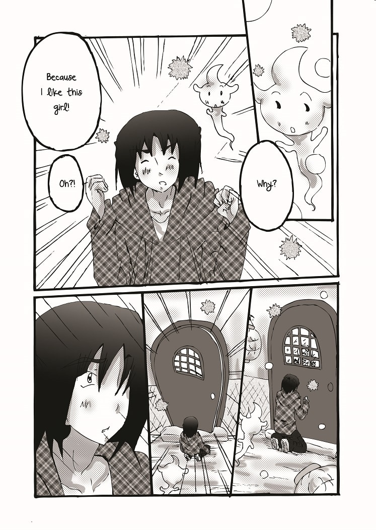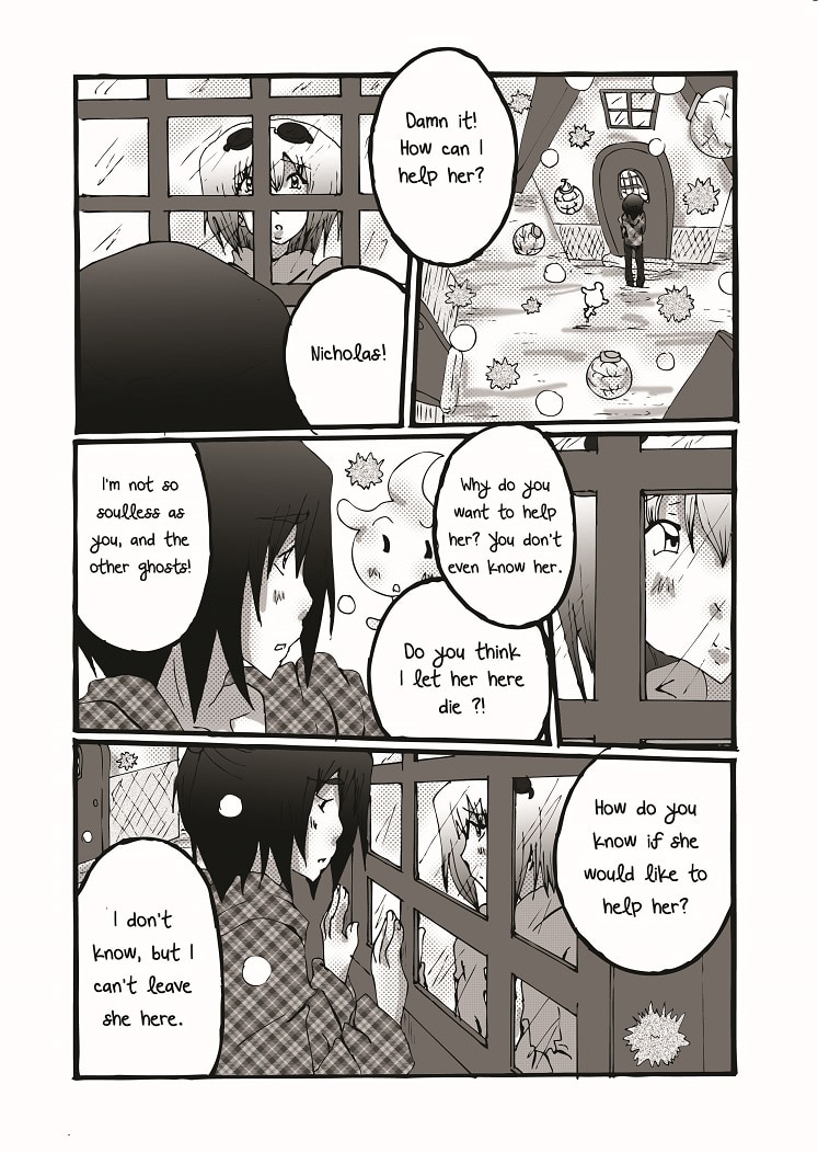 There she meets a sleeping boy and a ghost.
