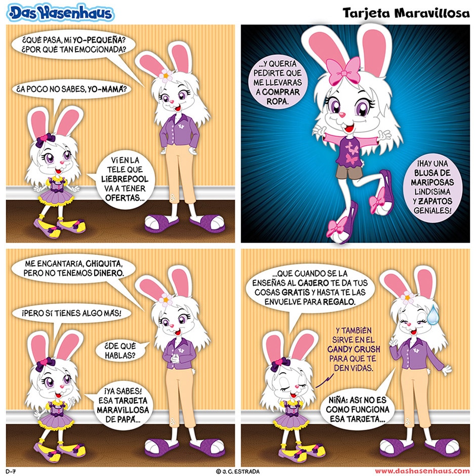 ¡Salta a la aventura de ser feliz! Diviértete con las vivencias y travesuras de Hans y Greta: dos hermanitos conejos que con su familia y amigos descubren día con día que la vida cotidiana no tiene por qué ser aburrida, y que la felicidad se encuentra hasta en las cosas más sencillas. ¡Una tirita cómica 100% familiar, pensada para los niños!