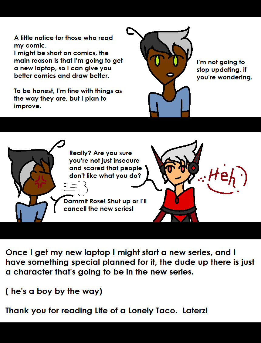 Hopefully my new laptop comes soon, I'm very sorry for the late updates. Thanks, Laterz. ^.^