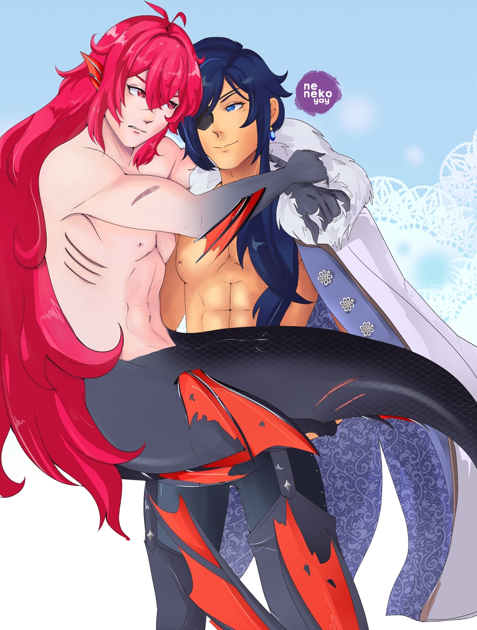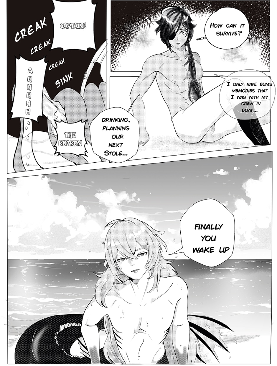 Kaeya a pirate who was shipwrecked because of the kraken, but he saved it out of curiosity to happen