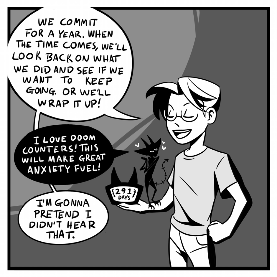 A comic about dealing with anxiety and a harsh inner critic.