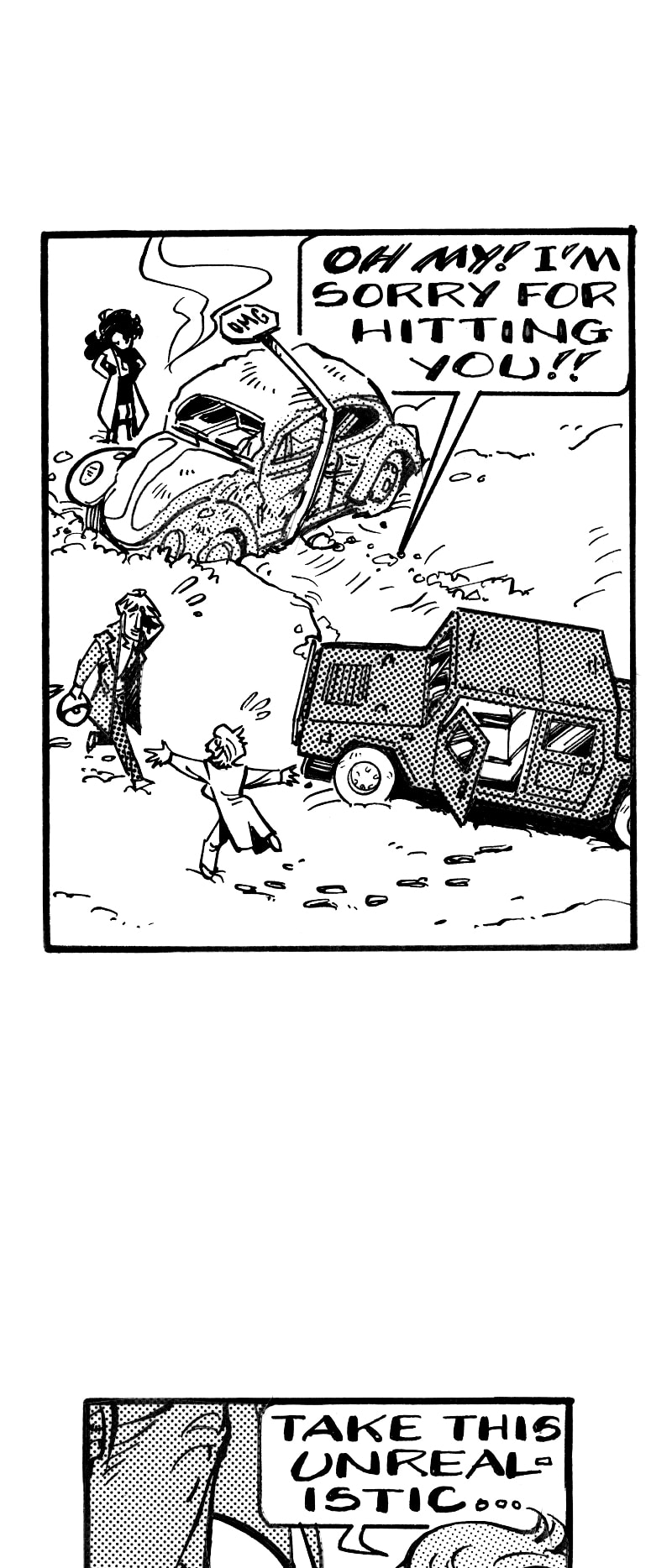 Wow, it's the old lady from episode 23, now that is a serious touchback. And that has got to be the toughest beetle in existence, is the engine still in the wrong place?