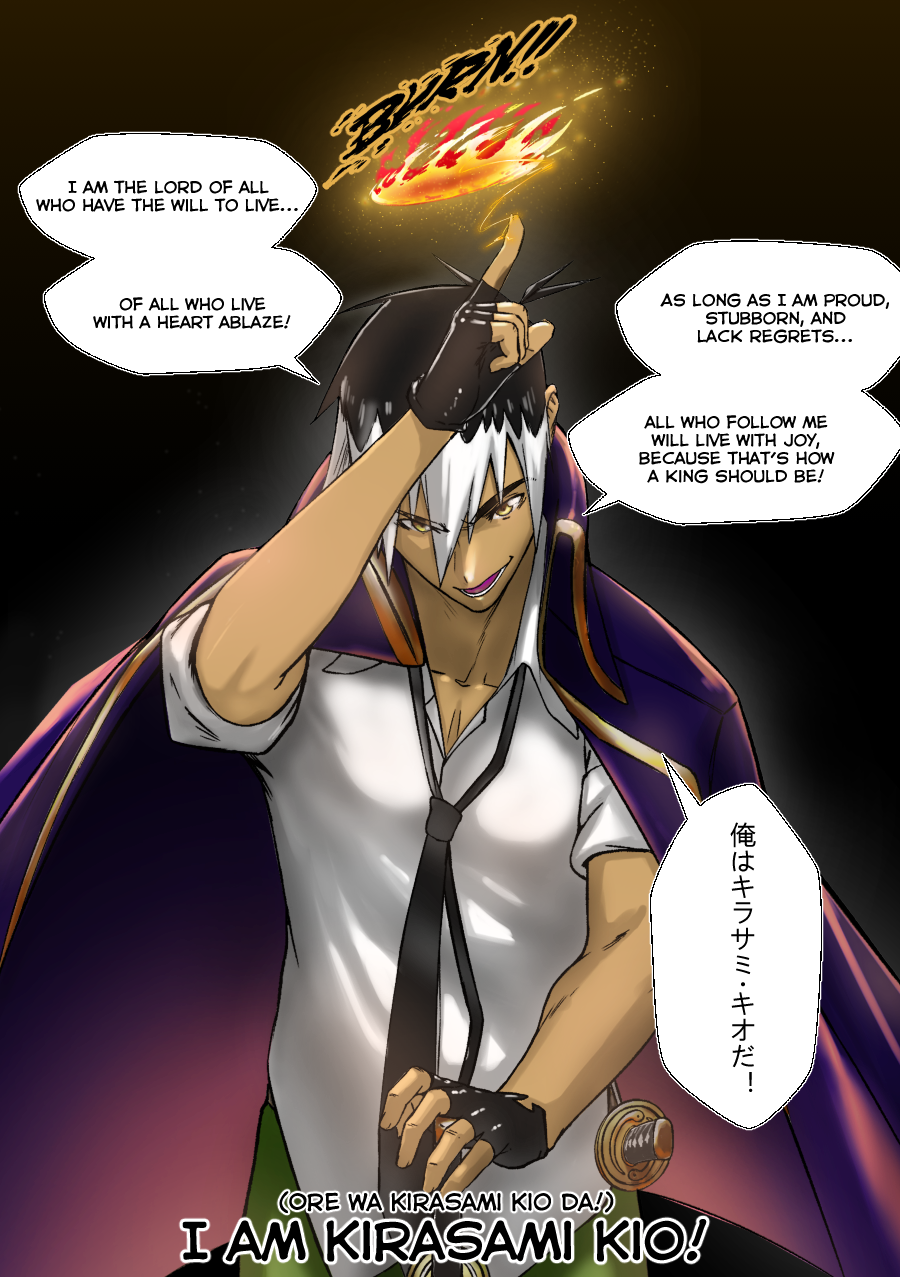 Kings with elemental powers fight against mythical creatures, monsters born of fear, to protect humanity—but only on the condition that it obeys them. The Fire Hearts, the alliance of Alexandria’s most fearsome kings, faced the Sackman, a mythical creature that feeds on the fear of children. Since then, Kio, Akai, Benckey, Haylen, Bel Bel, and Mako have overcome numerous challenges, met other kings, and forged friendships with some while becoming enemies of others. Now, they enter a new phase: Kio plans to reclaim his city from the current supreme ruler, Horus IX. Now begins the true story that must be told.