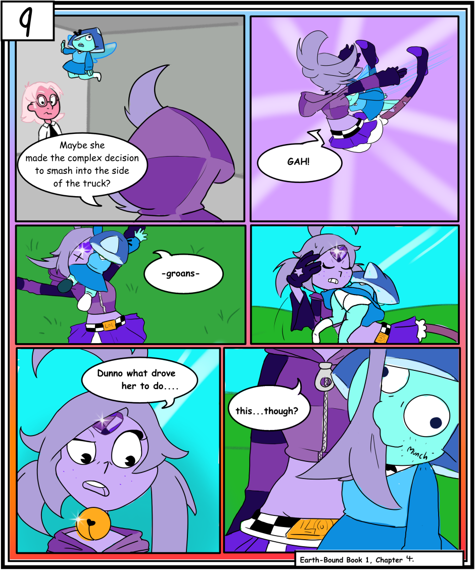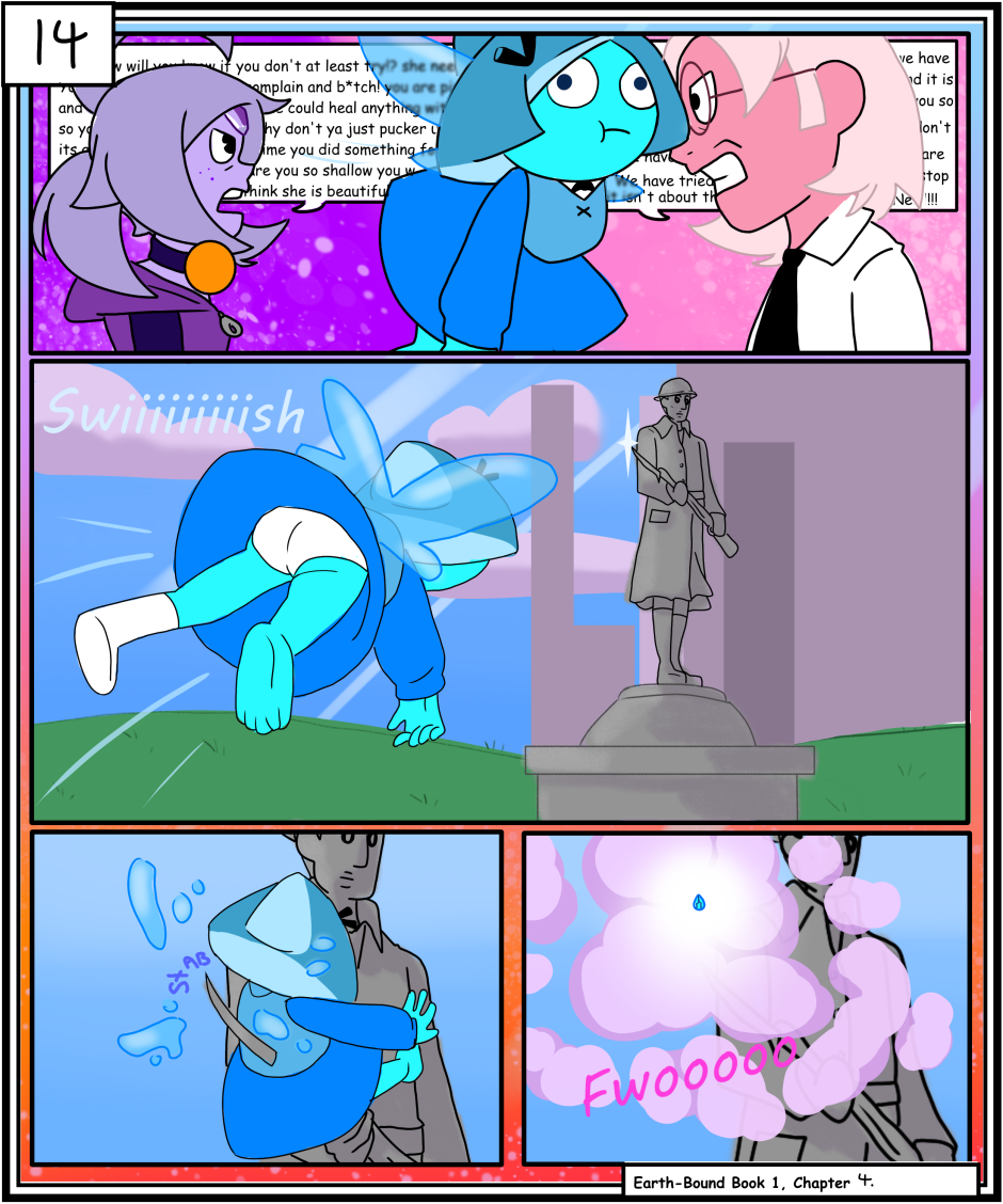 An adult fan comic for the series Steven Universe that follows a group of gems called the Lustrous Gems lead by an unstable purple spinel.