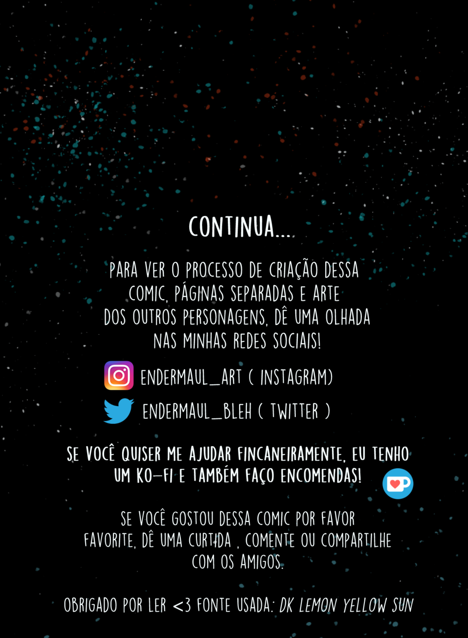 Eu ainda não tenho uma previsão de quando eu irei fazer estas tirinhas, mas acho que irá demorar um pouco. Eu ainda sinto que preciso melhorar muito no desenho e planejo redesenhar alguns personagens. Todos os desenhos e concept arts que eu fizer desses ocs e desse universo vocês podem encontrar no meu instagram. Talvez farei um novo capitulo avisando e explicando a situação. Por enquanto é incerto.