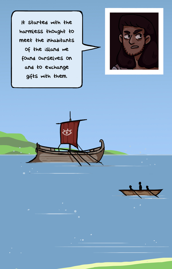 Back to drawing the pretty blue sea and sky, hurrah! <3 This page is one of my favourites - just because I got to draw such a nice landscape! The inside scenes aren't as fun...