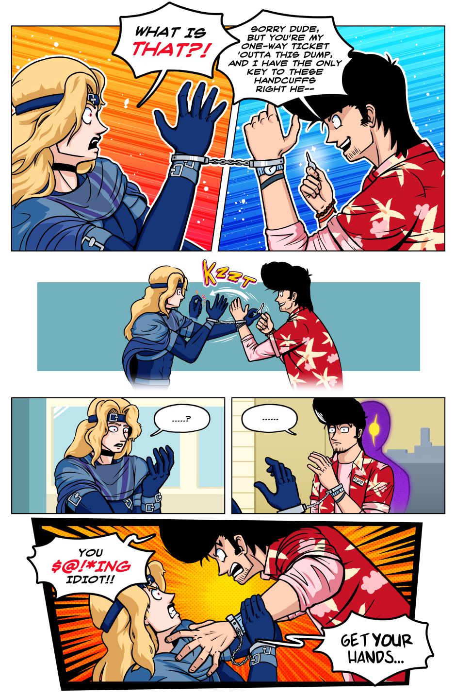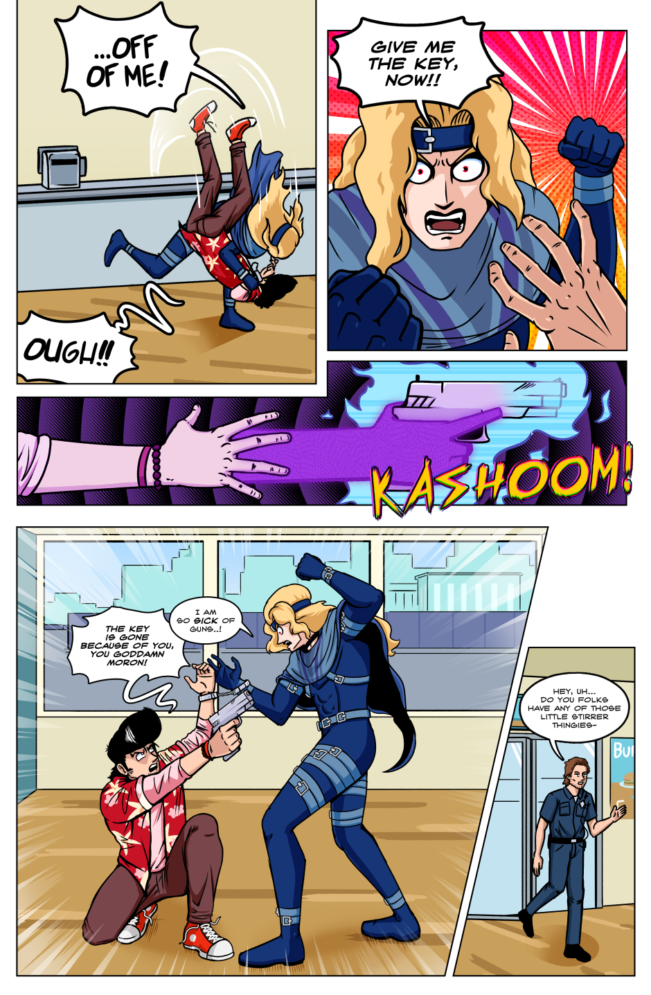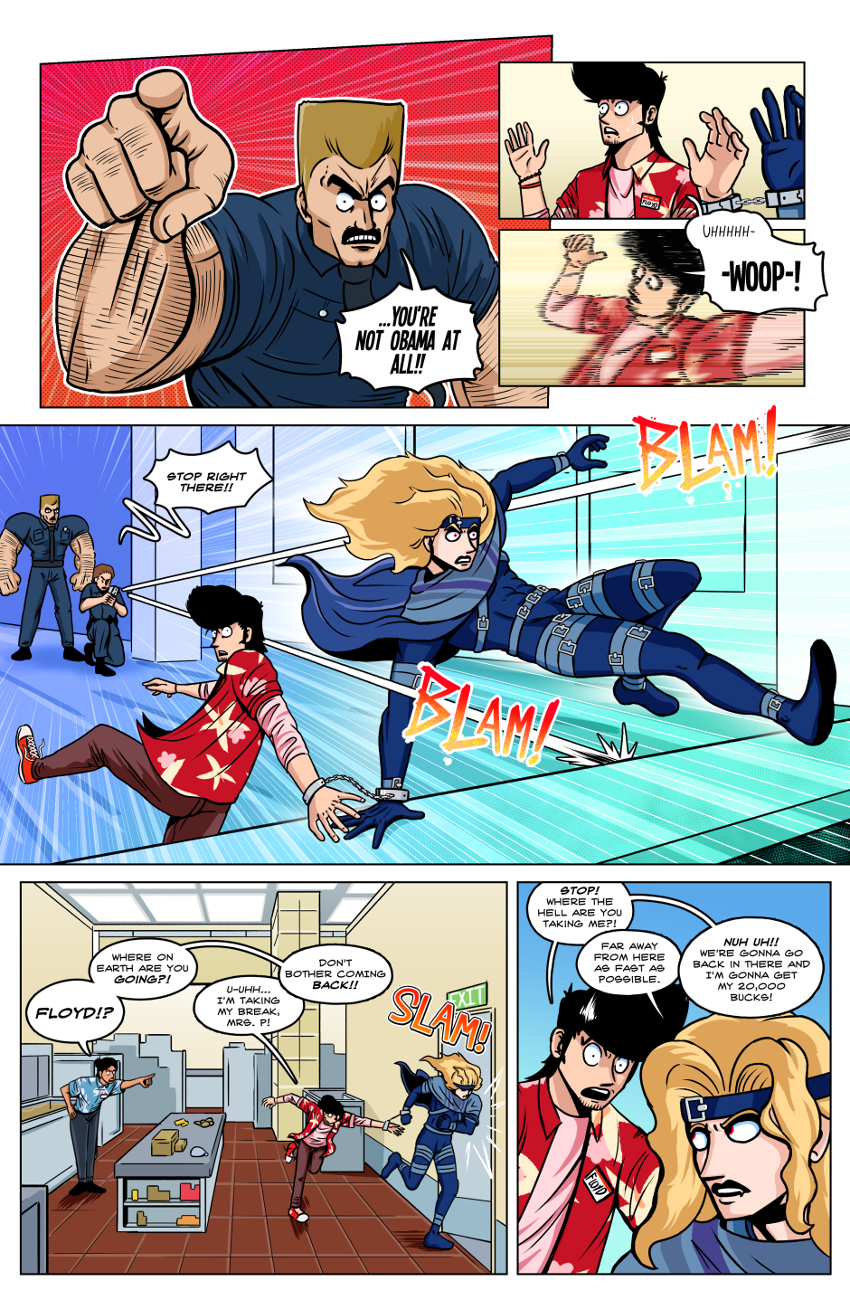 In a world in which superpowered individuals called "Star Children" are born once a year; we follow the journey of the lone Vampire thief Axel Bloodhenge (and his new "friend": Floyd), as they travel the U.S.A. in search of his stolen Vampire Artefacts. Who were the men that robbed Axel? What do they want with him? Why won't he eat a perfectly good Burrito!? The answers to these questions and MORE can be found in the pages of STRANGEWORLD!