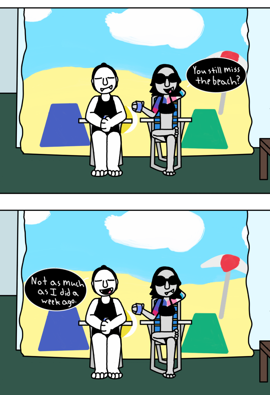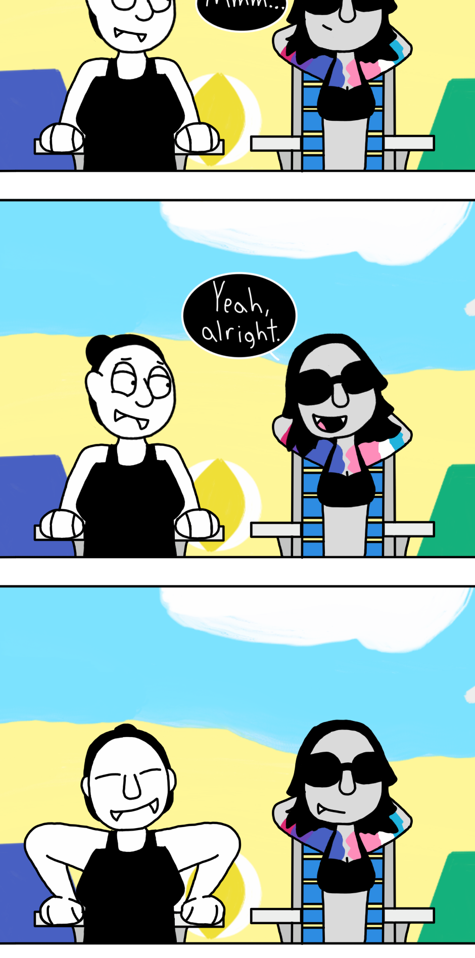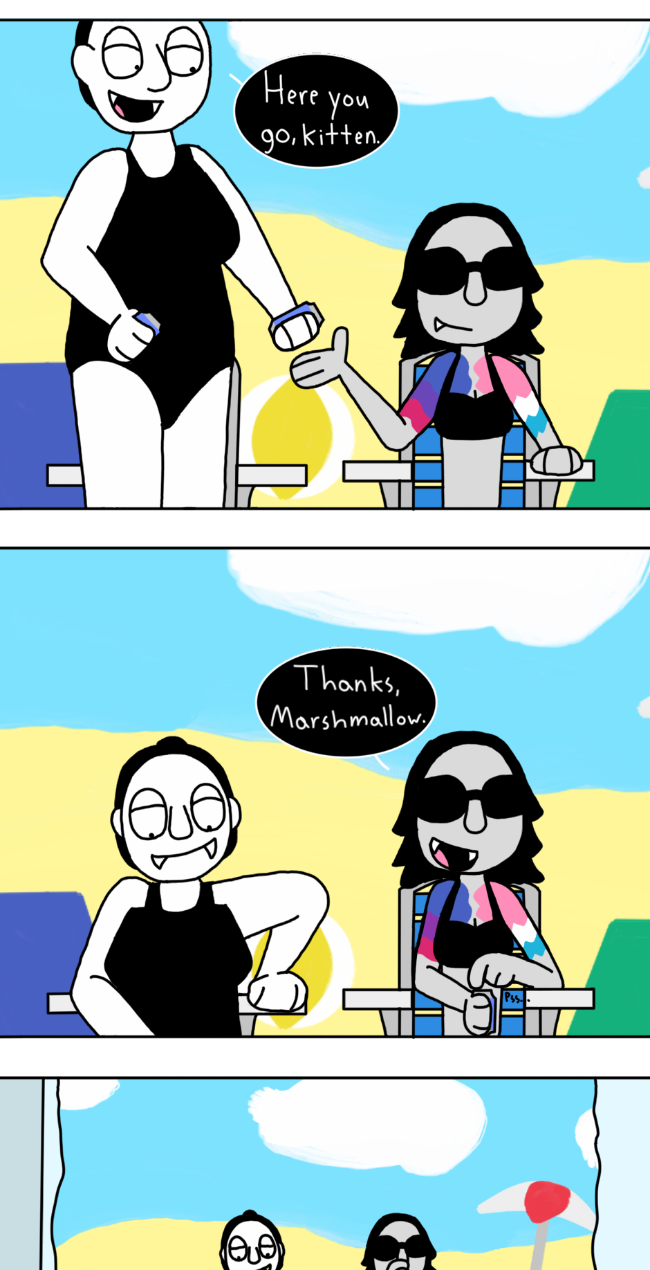 Sometimes, when you're a vampire, you have to find your own ways to have fun in the sun. Their Tumblr: https://asksandm.tumblr.com/