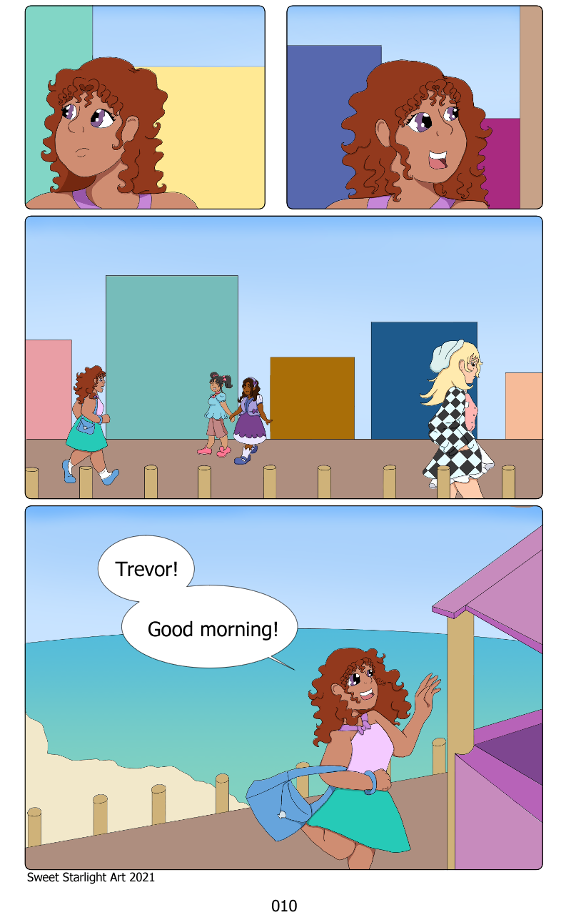 I included cameos of some friends' characters here, too. The two gals in the back of panel 3 belong to my friend Kit, and are part of their magical-girl VN, Dreamchasers! The lady in the foreground is named Tatsu, and belongs to my friend Cait and their project Heartkeeper Academy!