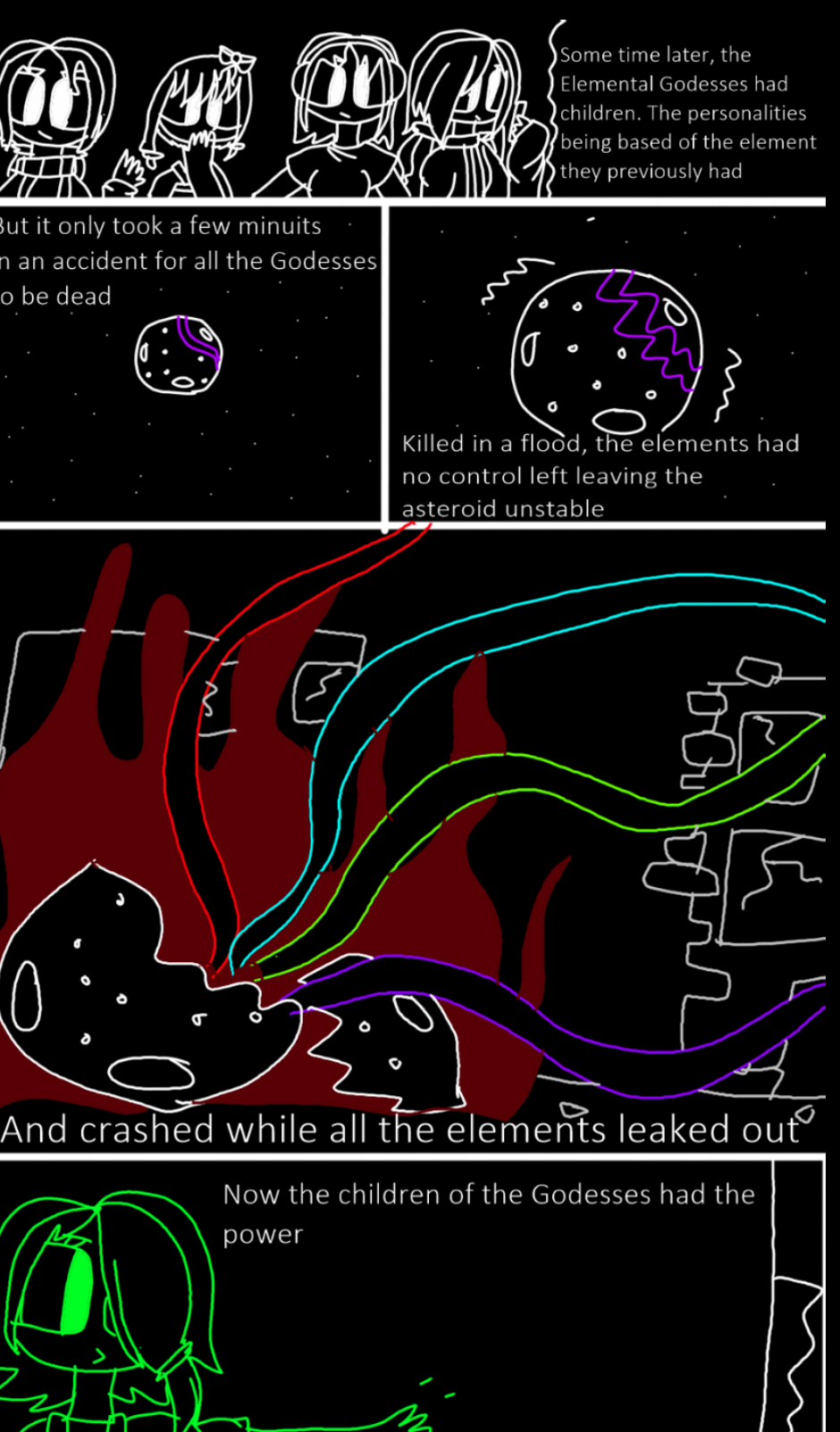 A reboot of a series I made when i was 11 in Scratch! A long time ago, there was the Elemental Goddesses who moved all their power to an asteroid that never moves.