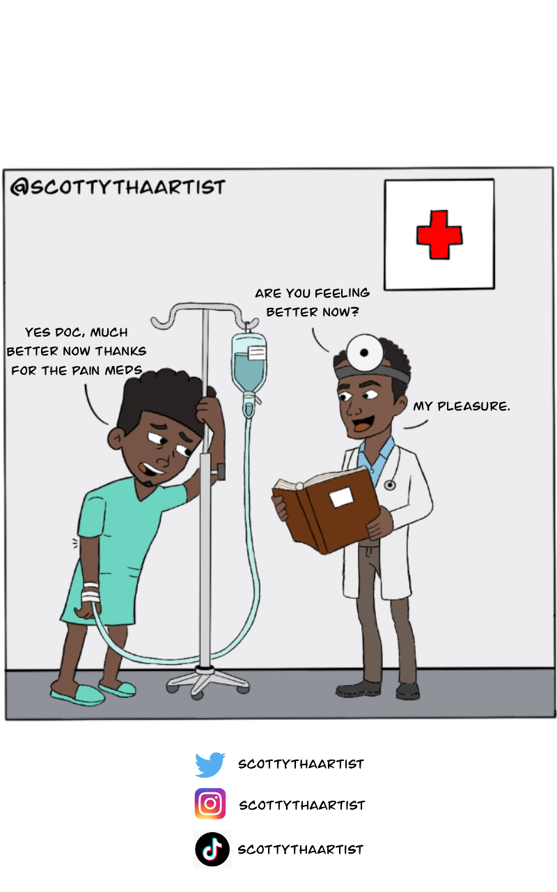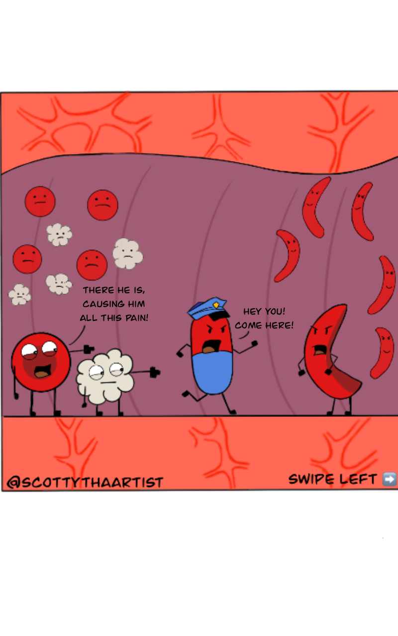 Hey Everyone! My name is Scotty and this is a comic sketch of my life and things you will find funny and relatable. I have Sickle Cell Disease (SCD). This comic strip means a lot to me because of my experiences with sickle cell has been a journey. I hope you all enjoy as there will be a lot more in store!